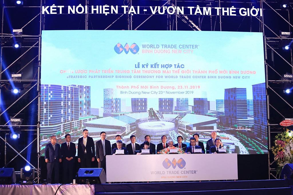 Các đại biểu ký kết hợp tác phát triển dự án Trung tâm thương mại thế giới Bình Dương
