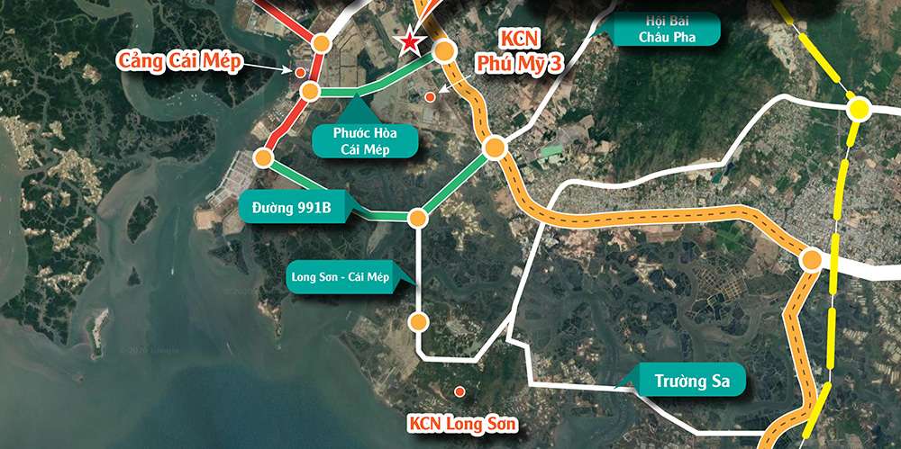 - Đường Phước Hòa – Cái Mép: được thiết kế thành 6 làn xe, kết nối QL 51 với đường Liên cảng Cái Mép – Thị Vải.