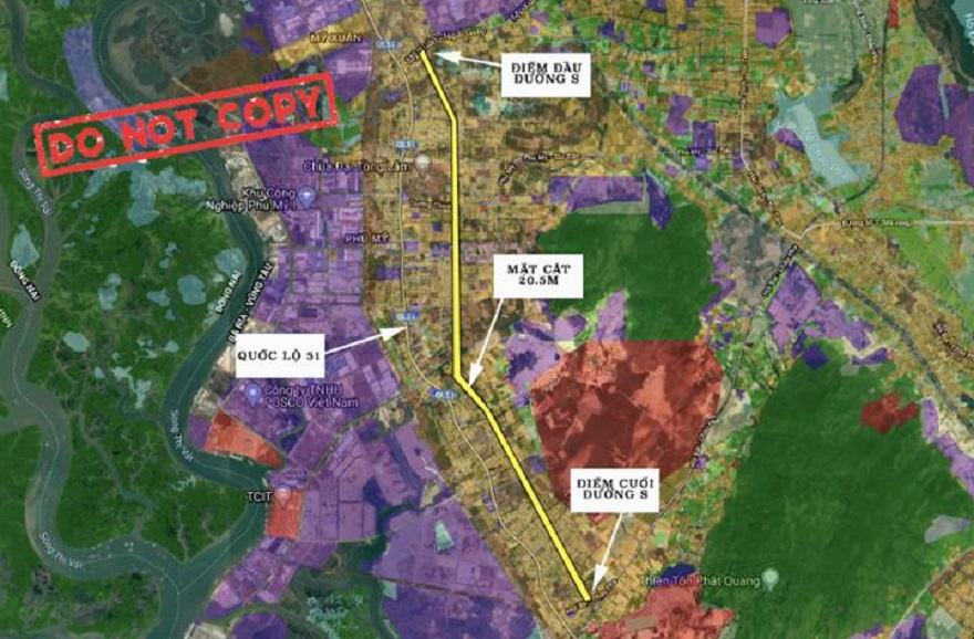 Dự án đoạn đường quy hoạch S song song bên trái Quốc Lộ 51 có tổng chiều dài 6.370m, rộng 20.5m. Điểm đầu tuyến giao với đường Mỹ Xuân – Ngãi Giao và điểm cuối giao với đường quy hoạch số 33 (nhánh rẽ đi vào cao tốc Biên Hoà – Vũng Tàu); Đầu tư hoàn chỉnh các hạng mục gồm: Nền mặt đường; Vỉa hè – gờ chặn – bó vỉa; Cây xanh; Hệ thống thoát nước mưa – Hệ thống thoát nước thải; Hệ thống điện chiếu sáng; Hệ thống báo hiệu an toàn giao thông; Cầu Thị Vải; Đường dây trung thế và trạm biến áp phục vụ chiếu sáng.