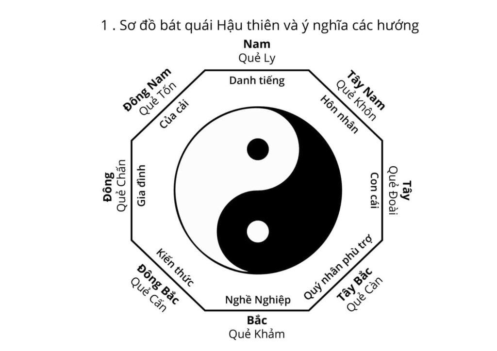 Theo phong thủy, 8 hướng của Bát quái thuộc 8 quẻ, chủ về 8 cung khác nhau liên quan đến cuộc sống của mỗi con người. Cụ thể như sau, bắt đầu từ hướng Tây Bắc và đi theo chiều kim đồng hồ: