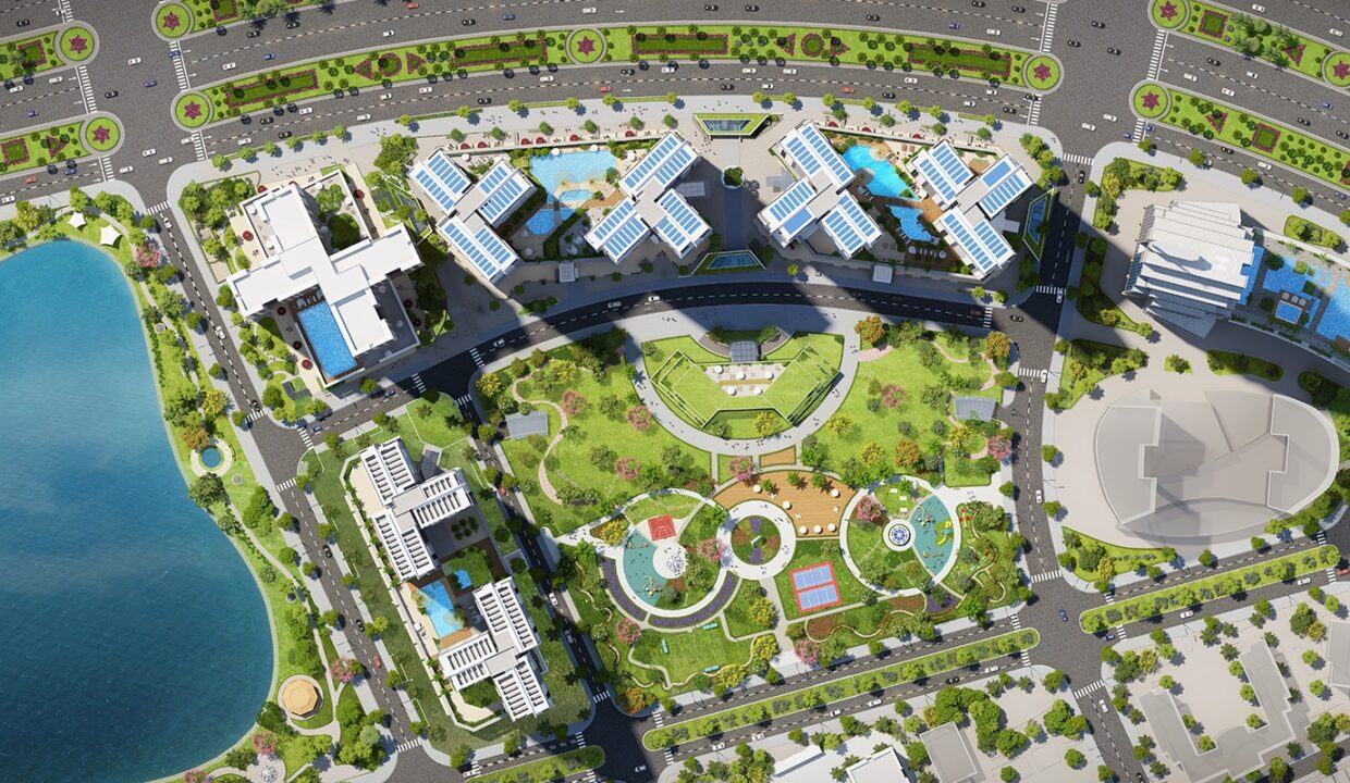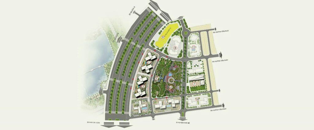 Lõi trung tâm của dự án là công viên Eco-Green rộng hơn 2ha, trở thành khu điều hòa không khí tự nhiên cho tổ hợp. Xung quanh công viên là các công trình với kiến trúc độc đáo, khác biệt hướng mặt ra đại lộ Nguyễn Văn Linh và công viên Hương Tràm (rộng đến 22ha). Các công trình được đặt trong không gian rộng rãi, thoáng mát với môi trường sống trong lành sẽ góp phần tôn nên vẻ đẹp đô thị cho người dân Quận 7 và Thành phố Hồ Chí Minh.