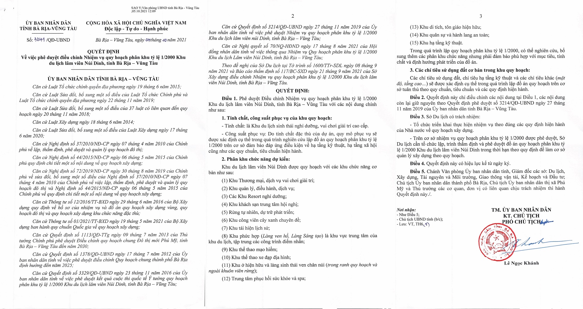 Tháng 10/2021, UBND Tỉnh BRVT đã chính thức công bố quyết định phê duyệt điều chỉnh Nhiệm vụ quy hoạch phân khu tỷ lệ 1/2000 Khu du lịch lâm viên Núi Dinh với tính chất là khu du lịch sinh thái nghĩ dưỡng, vui chơi giải trí cao cấp của tỉnh Bà Rịa – Vũng Tàu.