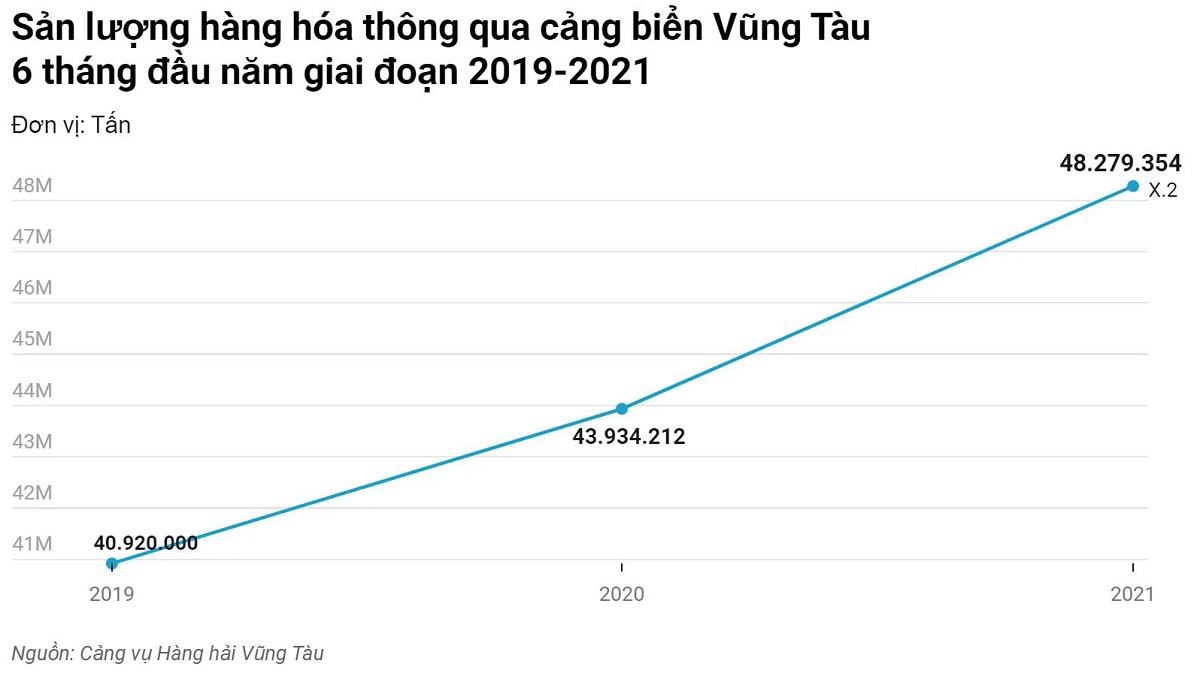 Thống kê từ Hiệp hội cảng biển Việt Nam cho biết từ đầu năm 2021 đến nay, hàng container thông qua khu vực Cái Mép – Thị Vải (CM-TV) ở Vũng Tàu đạt khoảng 2,3 triệu teu, tăng 47% so với cùng kỳ năm ngoái. Nếu như trước đây hàng hóa của khu vực phía nam chủ yếu qua cảng Cát Lái thì hiện tỷ lệ qua cảng này chỉ còn 60%, 40% còn lại qua CM-TV. Với thành tích này, CM-TV tiếp tục nằm trong nhóm cảng biển có tốc độ tăng trưởng nhanh nhất trên thế giới, với mức tăng khoảng 22%/năm.