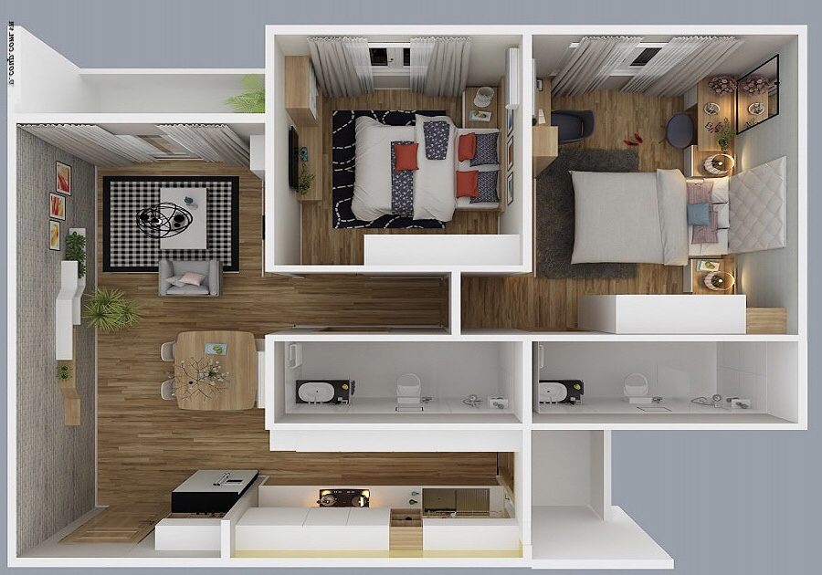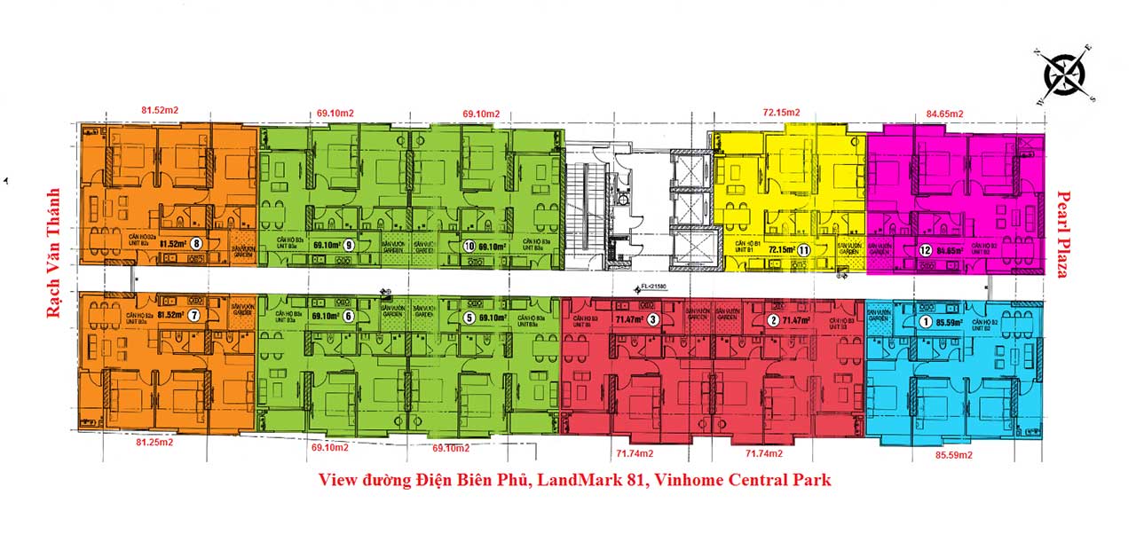 Số lượng căn hộ 248 căn, bao gồm 2 loại: Căn 2 phòng ngủ (diện tích 68.96 m2; 69.93 m2; 70m2 thông thủy ) và căn 3 phòng ngủ (diện tích 81.32 m2; 81.79 m2; 100 m2; 113.98 m2; 145.17 m2 thông thủy). Dự án có căn hộ penhouse & Penhouse sân vườn đầy đủ.