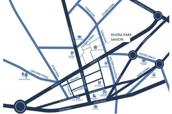 Liên kết vùng căn hộ hoàn hảo nhờ gần trục đường lớn 3/2 và Thành Thái kết nối thẳng với nơi dự án Rivera Park Sài Gòn tọa lạc.