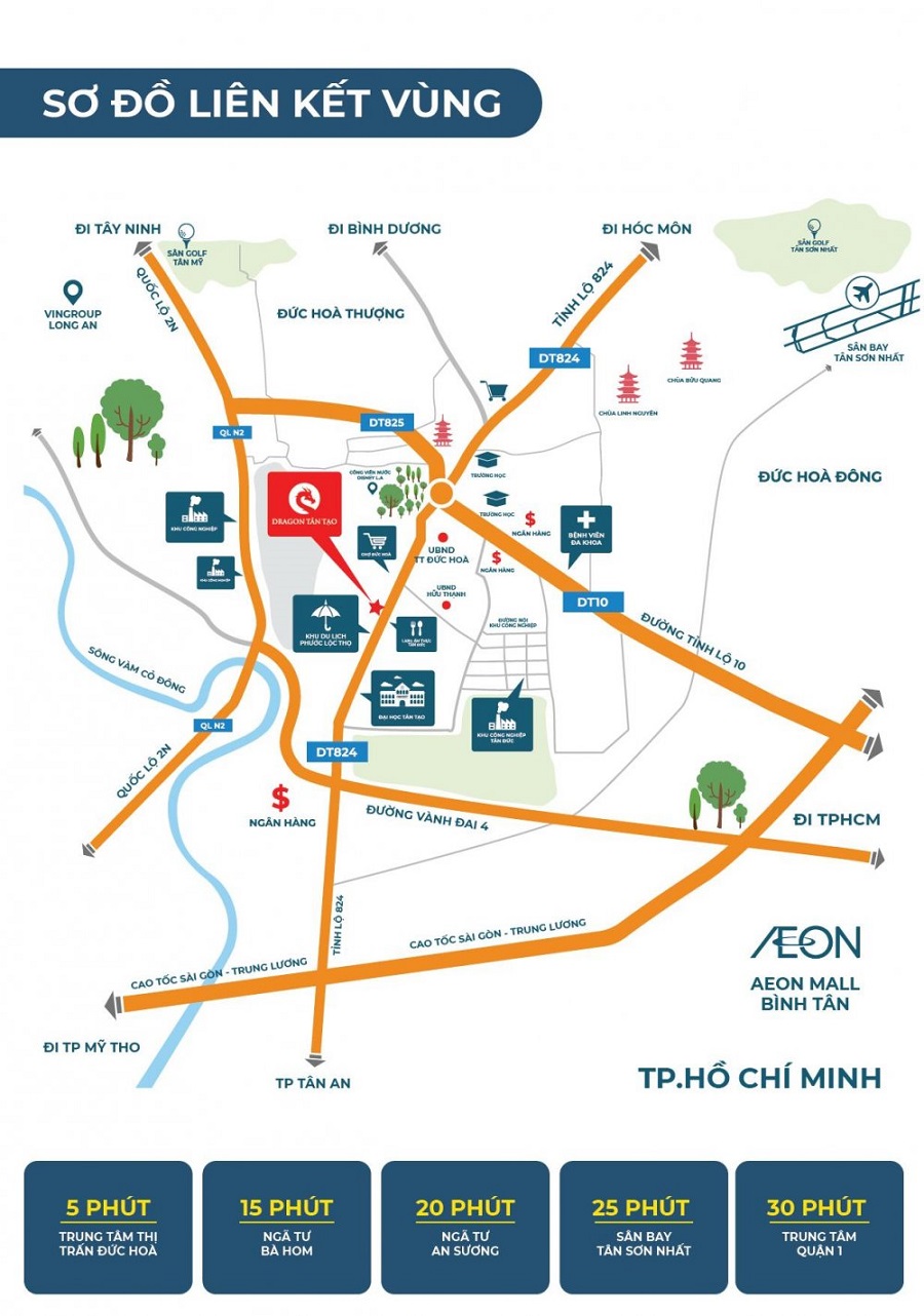 Vị trí tiếp giáp tứ phương kết nối của dự án Dragon Tân Tạo Đức Hòa:
