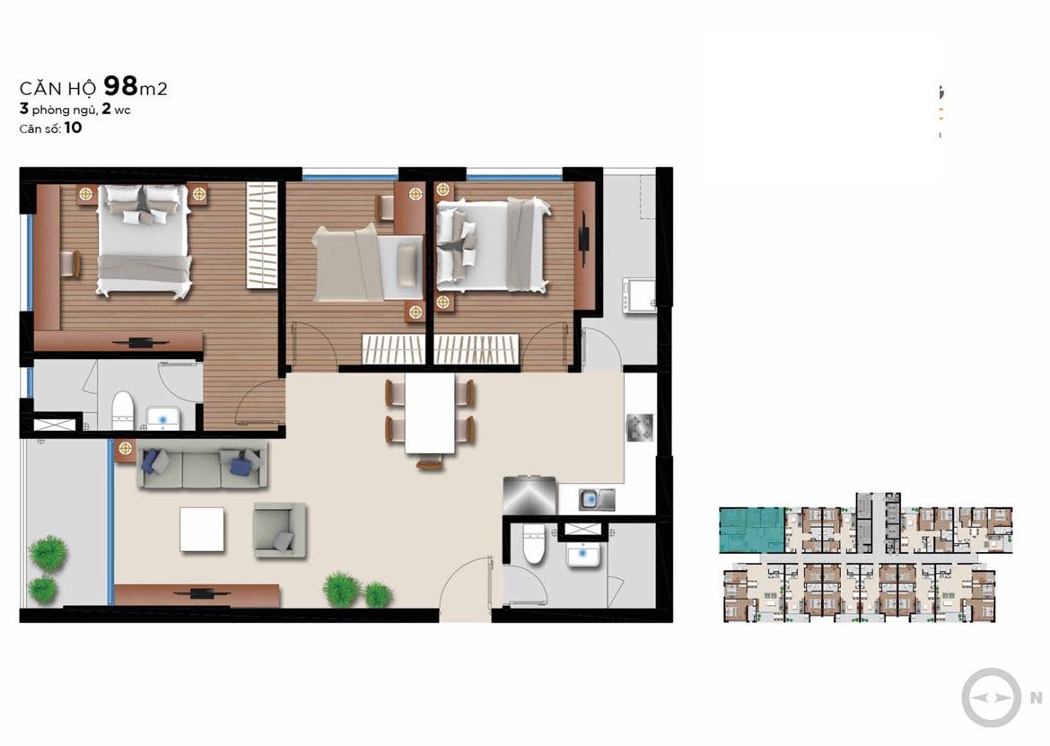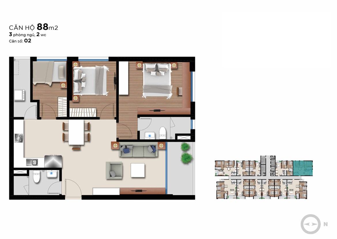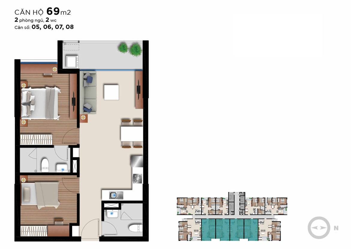 Các căn hộ Angia Riverside được triển khai xây dựng với diện tích đa dạng trong khoảng từ 51m2 -115m2, bố trí từ 2 – 3 PN.