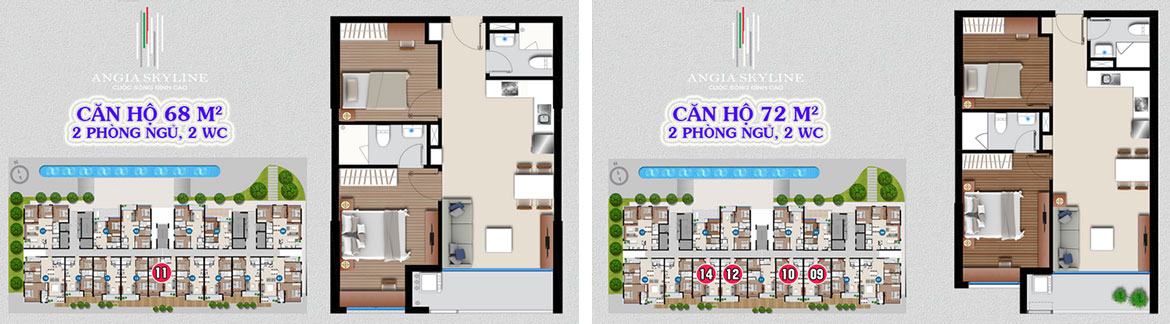 DTXD:66m2 – DTTT: m2 – Vị trí: 08, 15 DTXD:68m2 – DTTT: m2 – Vị trí: 11 DTXD:72m2 – DTTT: m2 – Vị trí: 09, 10, 12, 14 |