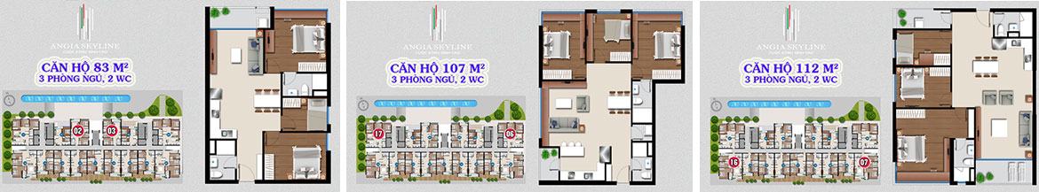 DTXD: 83m2 – DTTT: m2 – Vị trí: 02, 03 DTXD: 107m2 – DTTT: m2 – Vị trí: 06. 17 DTXD:114m2 – DTTT: m2 – Vị trí: 07, 16 |