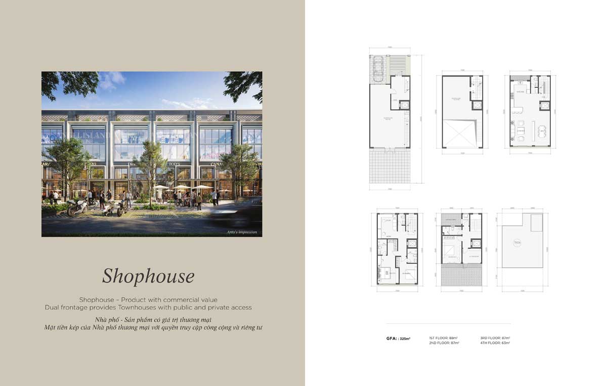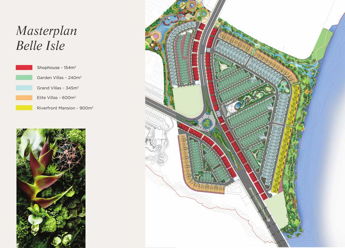 Giai đoạn 1: Triển khai phân khu Belle Isle với các loại sản phẩm như: Shophouse: 154m2, Garden Villas: 240m2, Grand Villas: 345m2, Elite Villas: 600m2, Riverfront Mansion: 900m2