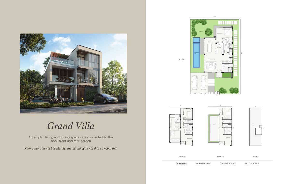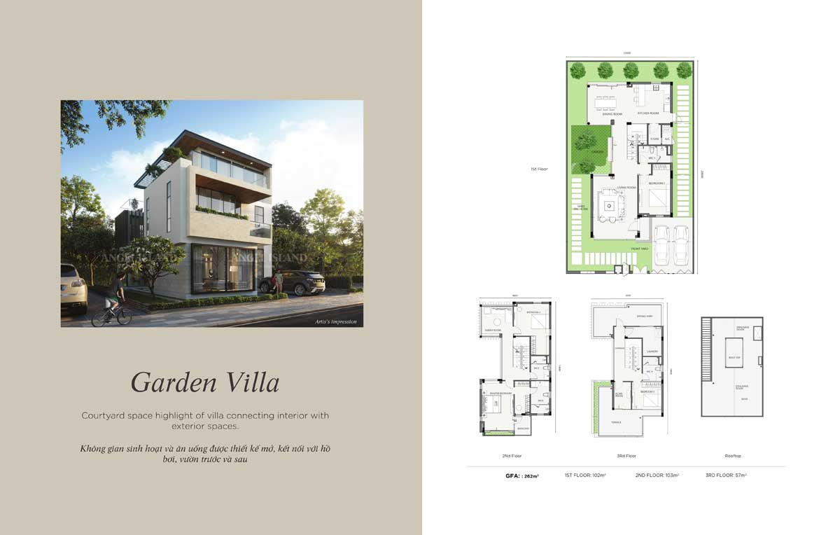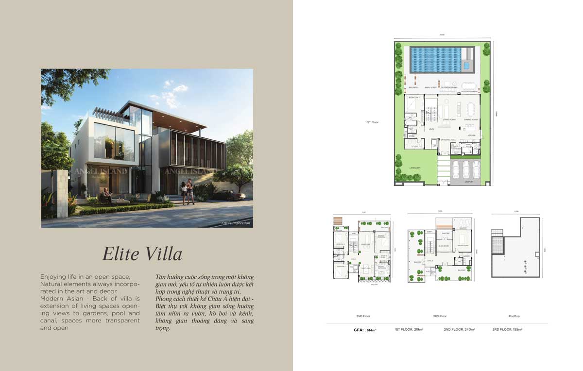 Dự án Khu đô thị Angle Island có tổng tới hơn 4.000 biệt thự đa dạng loại hình như: biệt thự vườn; biệt thự view sông; dinh thự… tất cả đều được thiết kế hiện đại, diện tích rộng lớn đáp ứng nhu cầu sở hữu BĐS sinh thái – nghỉ dưỡng hạng sang của giới khách hàng thượng lưu.
