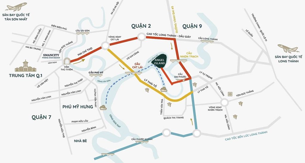 KĐT du lịch Angel Island có vị trí tọa lạc tại Đảo Nhơn Phước thuộc xã Đại Phước – H.Nhơn Trạch – T. Đồng Nai. Nơi đây là vị trí kim cương được đánh giá cao về liên kết vùng khu nằm trên trục phát triển kinh tế của khu vực Đông Nam Bộ, từ đây còn có lợi thế là tiếp giáp với quận 2, 9 của TP Hồ Chí Minh cùng với đó là hệ thống hạ tầng giao thông phát triển nhanh chóng.