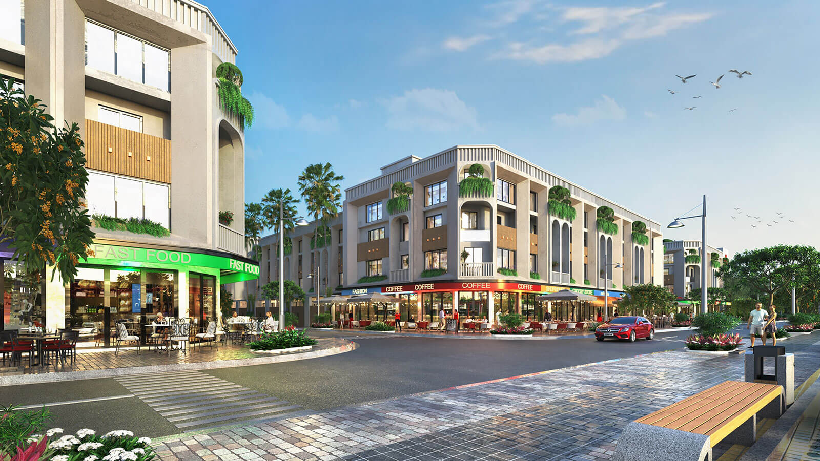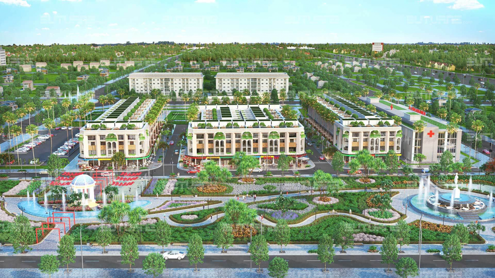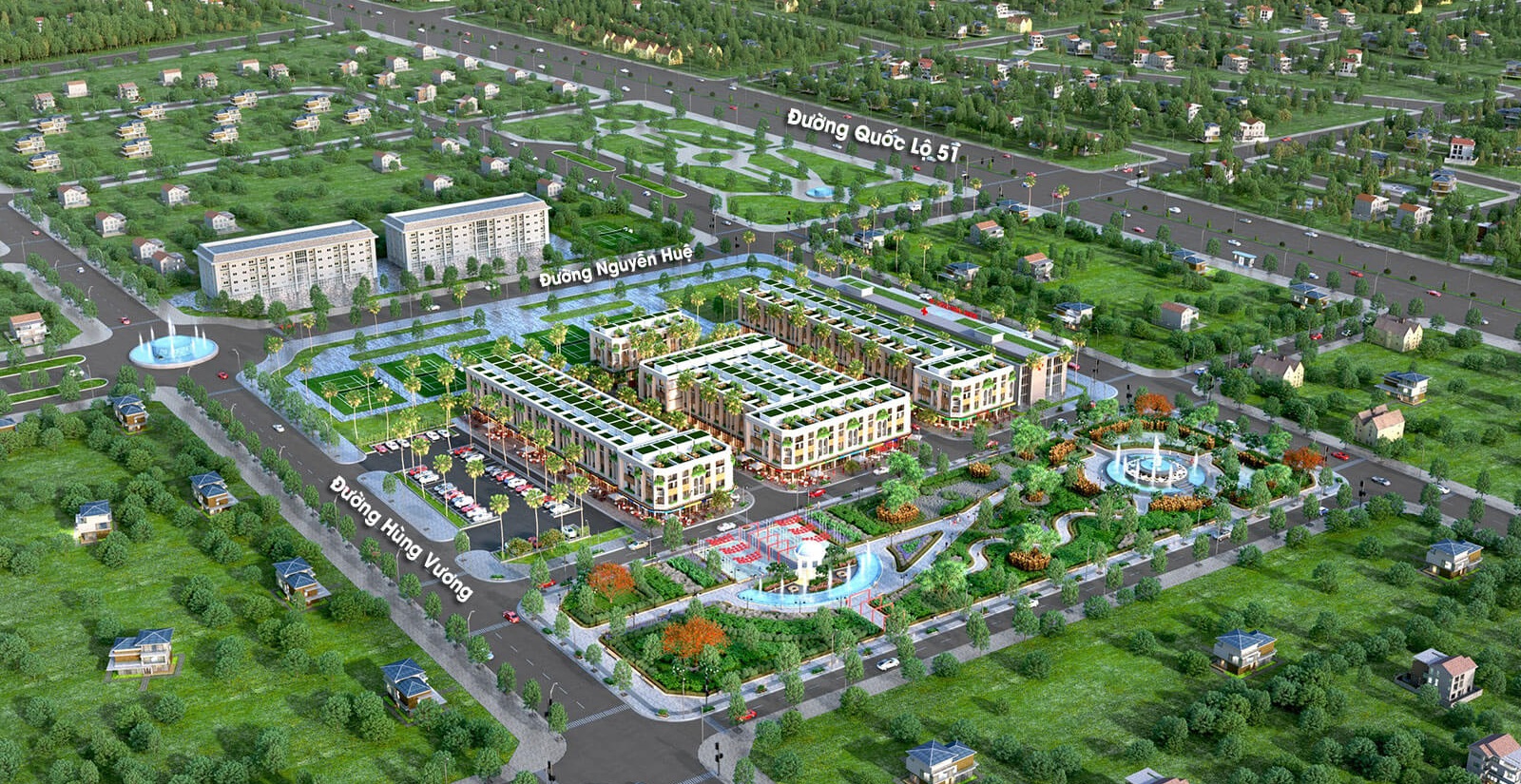 Trên đường lối trong dự án, chủ đầu tư chú trọng làm các tiểu cảnh cây xanh bao phủ lối đi, tạo một môi trường sống thông thoáng, giảm nhiệt độ không khí xung quanh. Cộng đồng cư dân khi về đây ở sẽ yên tâm hơn những nơi khác