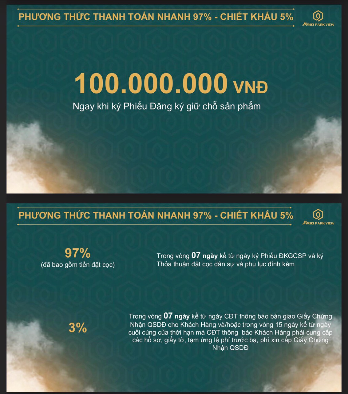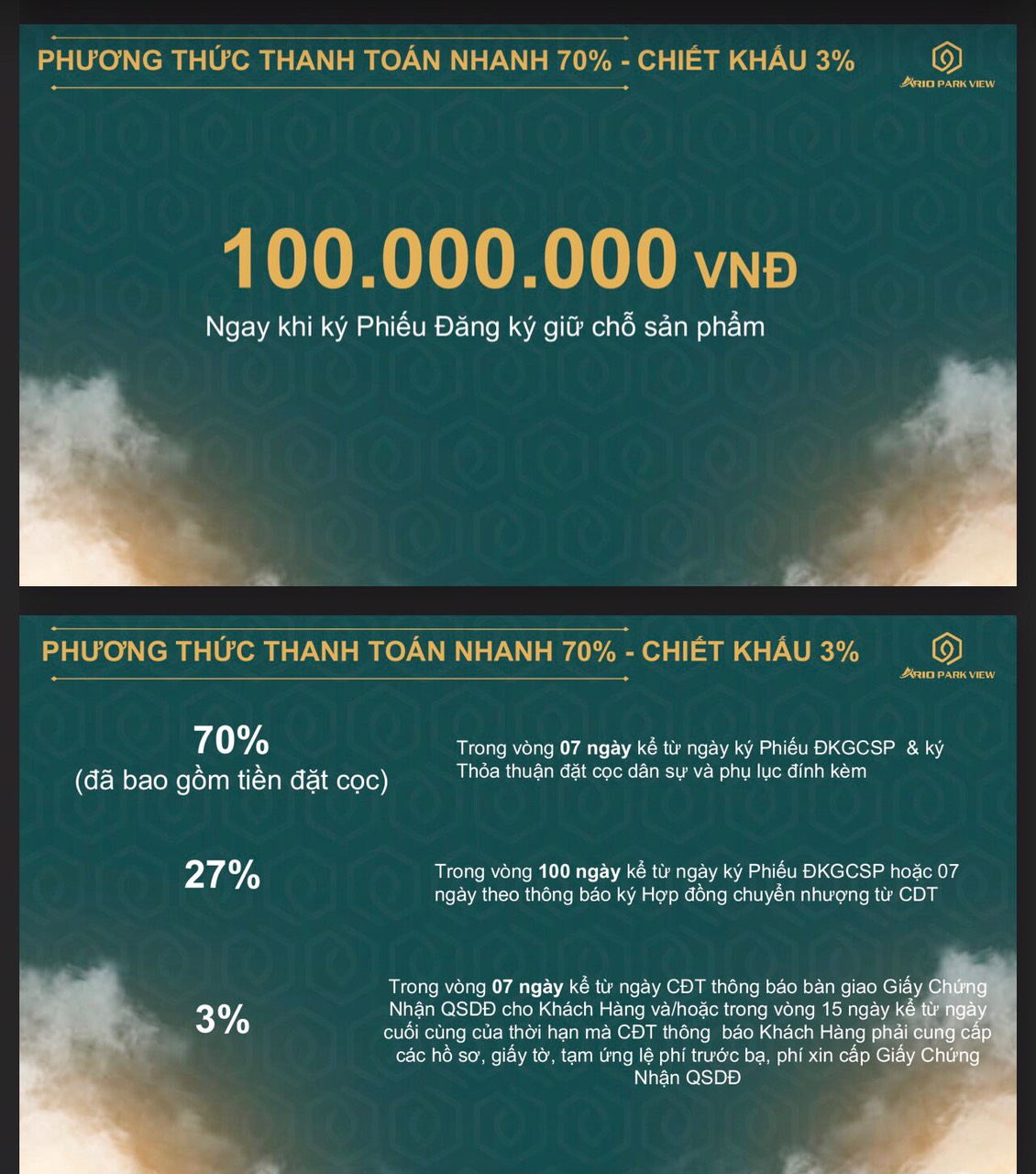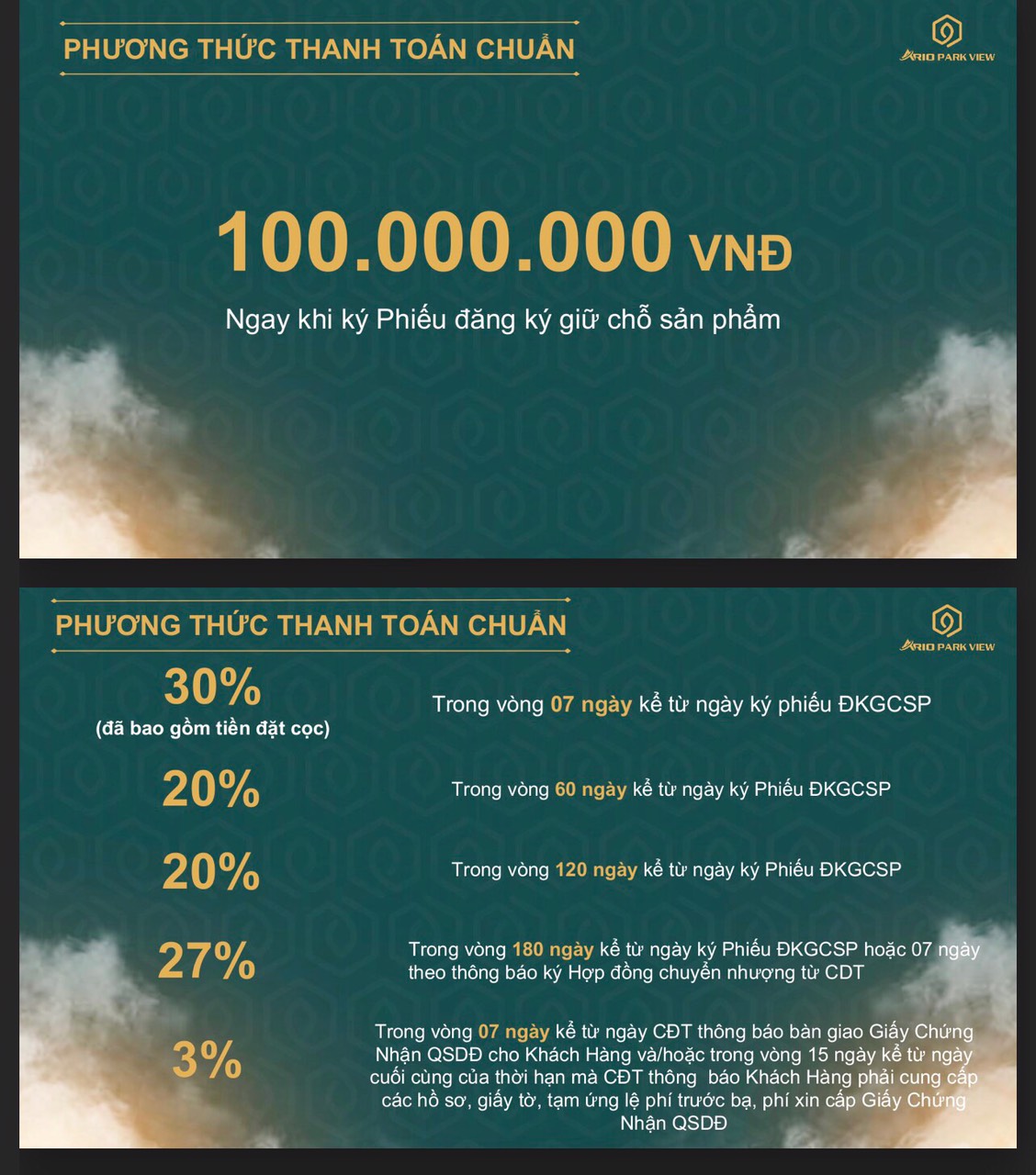 Phương thức thanh toán: đợt đầu 30%, 70%, 97%
