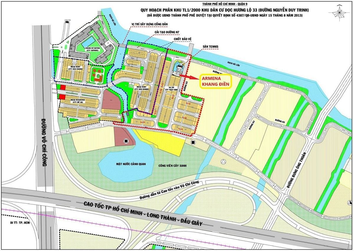Armena Khang Điền nằm ngay sau Căn hộ Safira nối tiếp đường N7 của dự án Nhà phố Mega Ruby. Tiếp nối thành công từ Verosa Park,dự án Armena là khu nhà phố biệt thự cao cấp nhất của Khang Điền tại Thành phố Thủ Đức với chất lượng 5 sao tại khu vực, quy hoạch khu compound khép kín, biệt lập an ninh tuyệt đối, bao quanh là rạch sông lớn nhỏ thông thoáng tạo thành một tổ hợp nghĩ dưỡng sang trọng và thoáng mát.