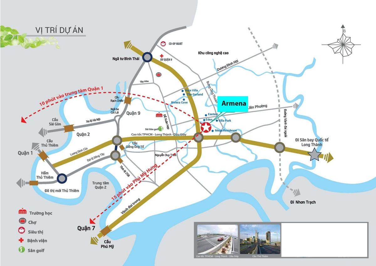 Vị trí tiếp giáp Quận 7 cùng hàng loạt trục giao thông huyết mạch: Cao tốc, Liên Phường, Võ Chí Công… giúp cho cư dân Armena dễ dàng di chuyển về các quận trung tâm và tiện ích lân cận.
