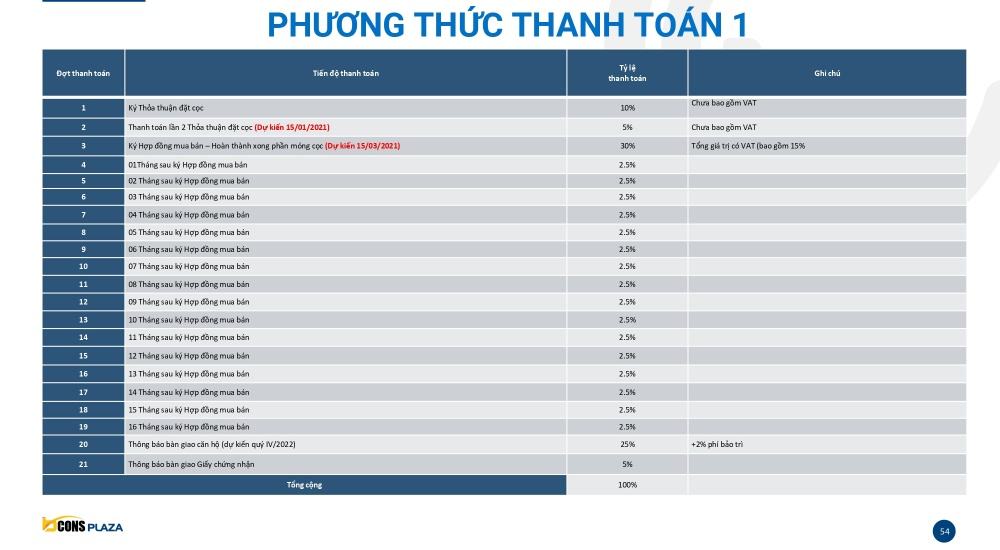 Phương thức thanh toán 2 tại dự án căn hộ Bcons Plaza