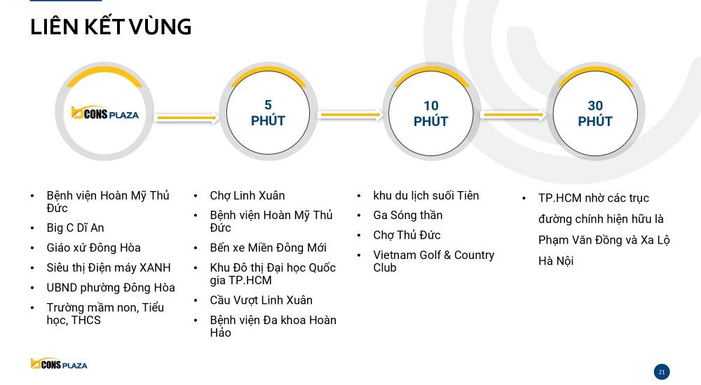 10 phút di chuyển đến: Khu du lịch suối Tiên; Ga Sóng thần; Chợ Thủ Đức; Vietnam Golf & Country Club.