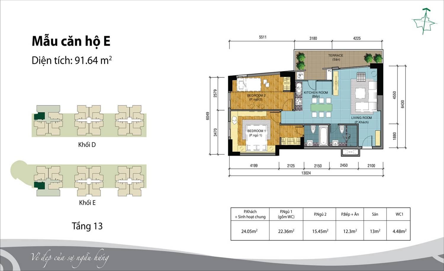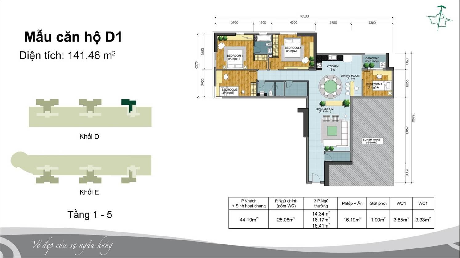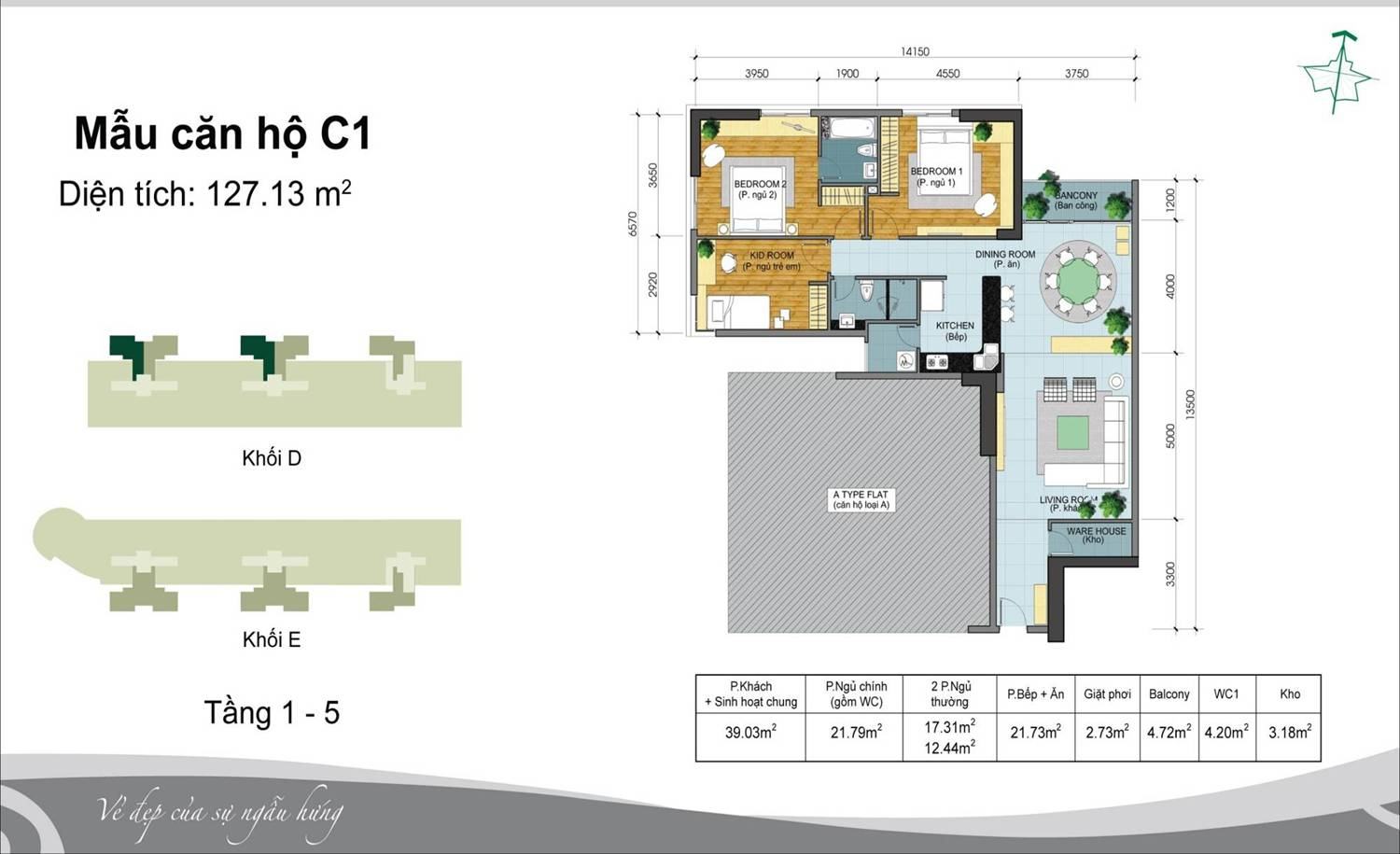 Gồm có: 944 căn hộ, 7 block và 3 khu. Khu A: 198 căn, Khu D: 373 căn, Khu E: 373 căn