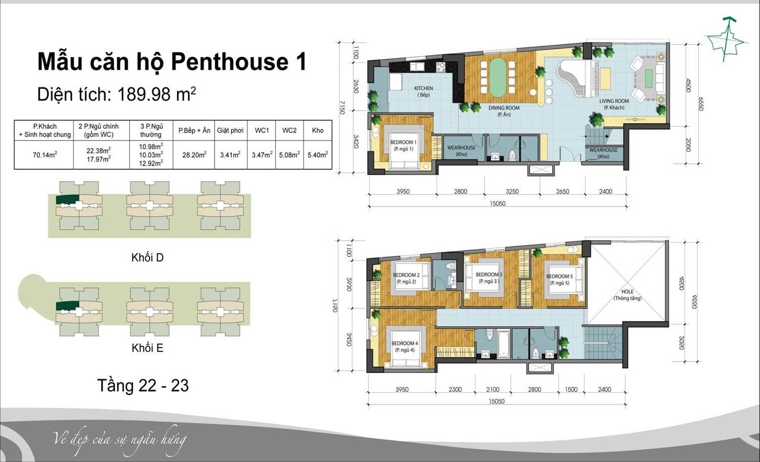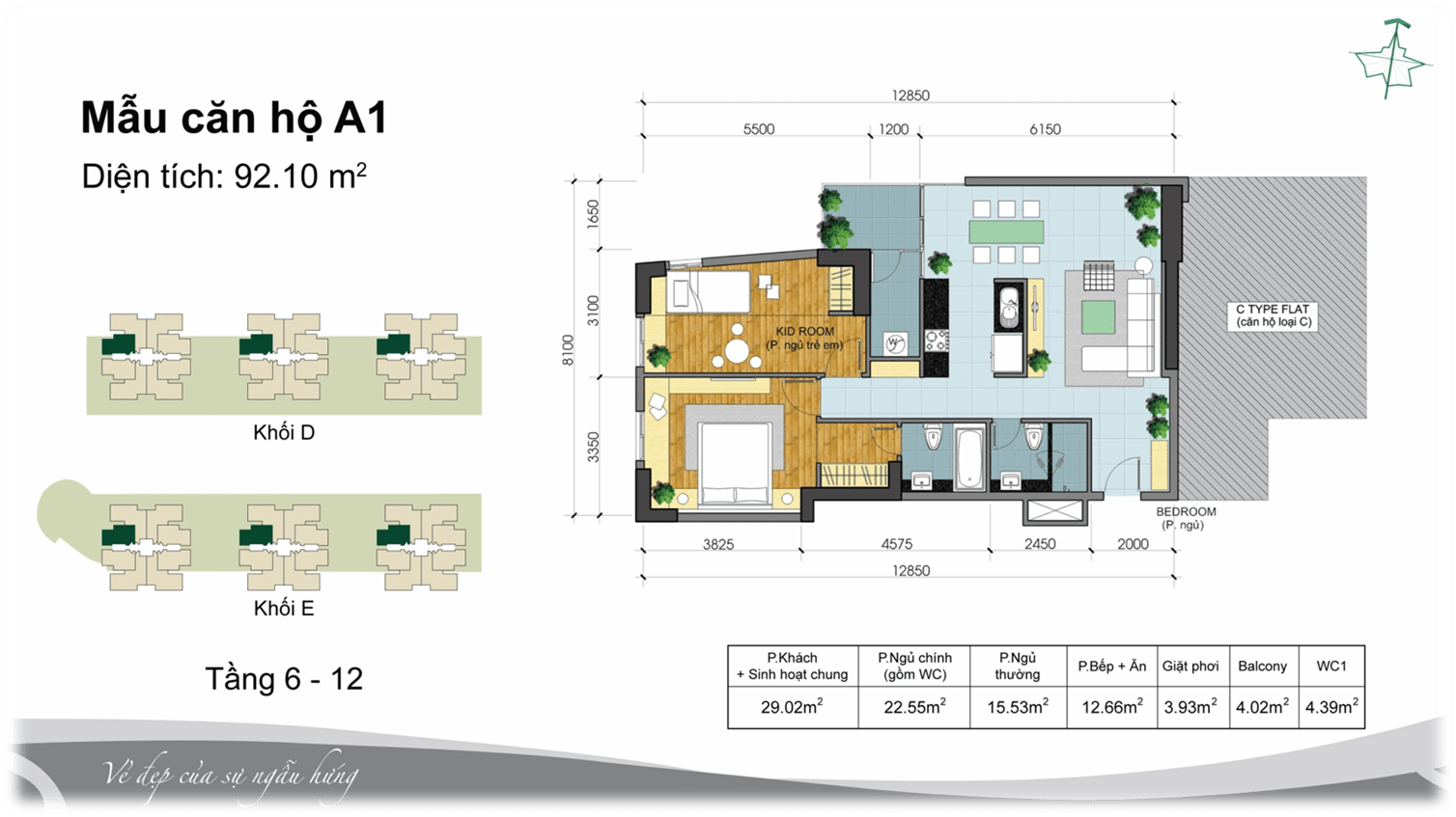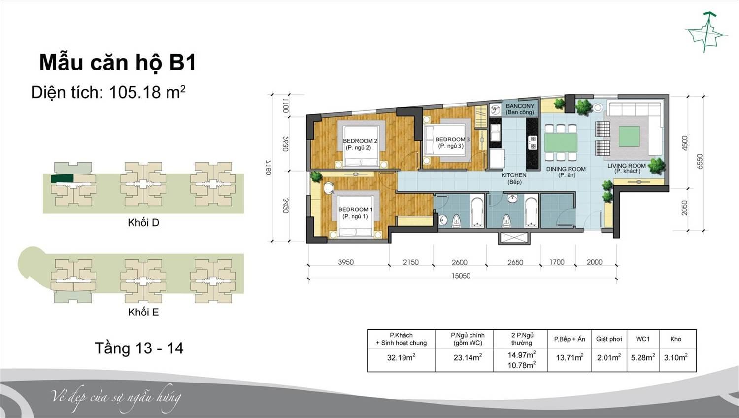 Gồm có: 944 căn hộ, 7 block và 3 khu. Khu A: 198 căn, Khu D: 373 căn, Khu E: 373 căn