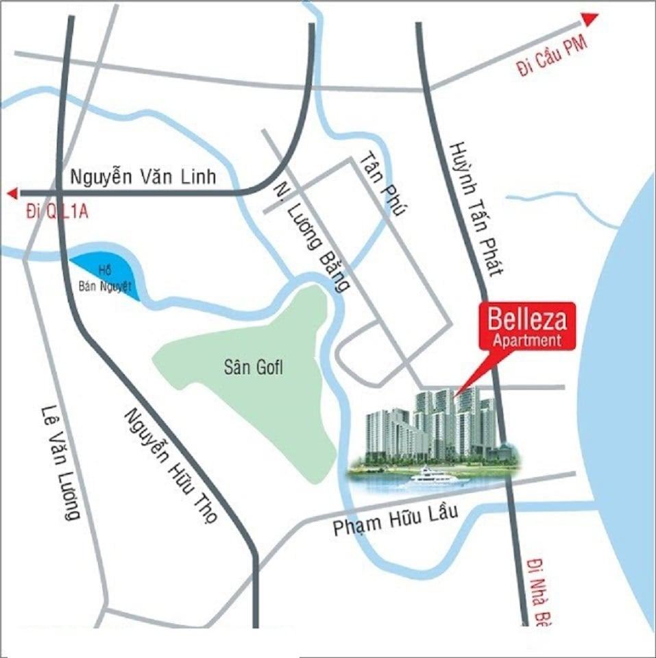 Từ căn hộ Chung cư Belleza có thể kết nối thuận lợi khu đô thị mới Phú Mỹ Hưng bởi các trục đường Nguyễn Lương Bằng nối dài (chỉ mất 500m) hoặc Hùynh Tấn Phát, kết nối thuận tiện với Q.2, Q.9 bởi cầu Phú Mỹ.