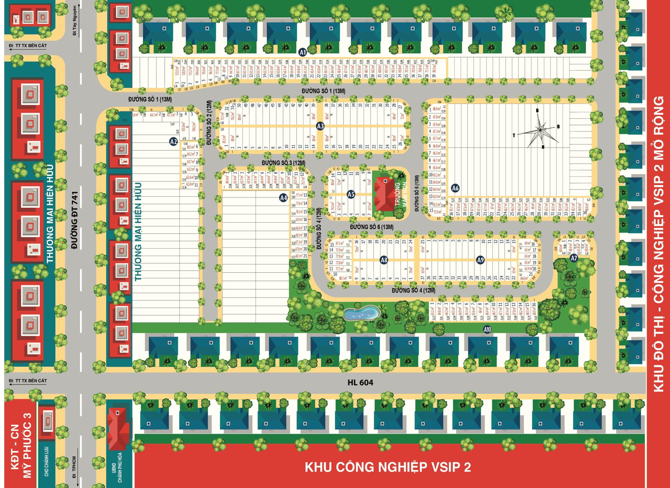Mặt bằng phân lô dự án Bến Cát City Zone