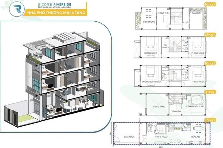 Dự án Biconsi Riverside nằm trên khu đất có tổng diện tích 96.197,4 m2 với 10 block nhà phố, khu nhà ở xã hội, trung tâm thương mại dịch vụ. Trong đó 284 căn nhà phố được thiết kế từ 3 – 4 tầng. Mỗi căn tại Biconsi Riverside Bình Dương có diện tích từ 100 m2 – 105 m2.
