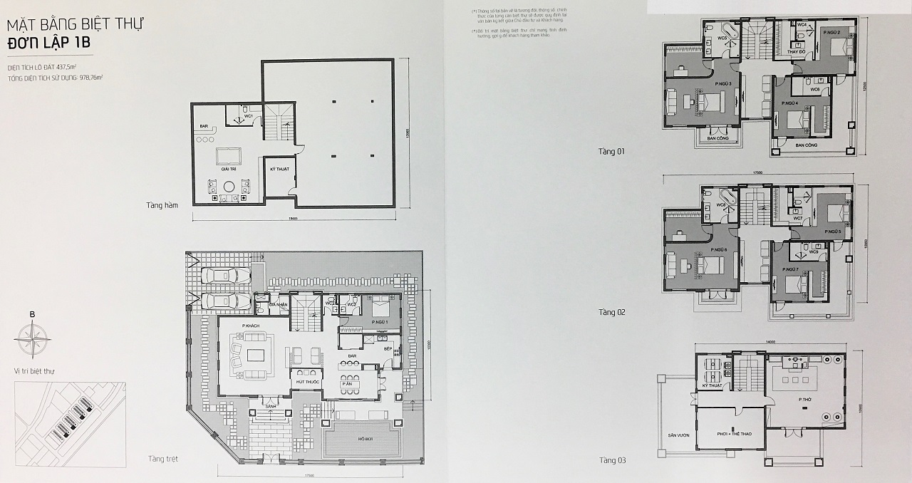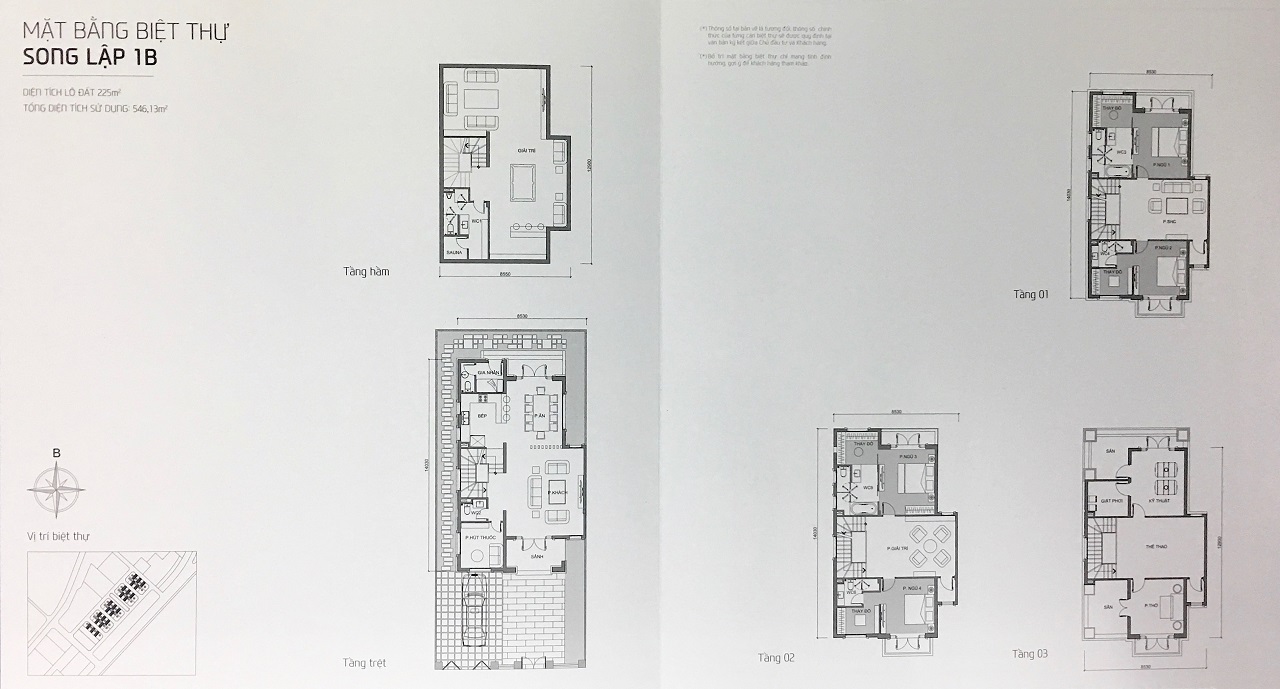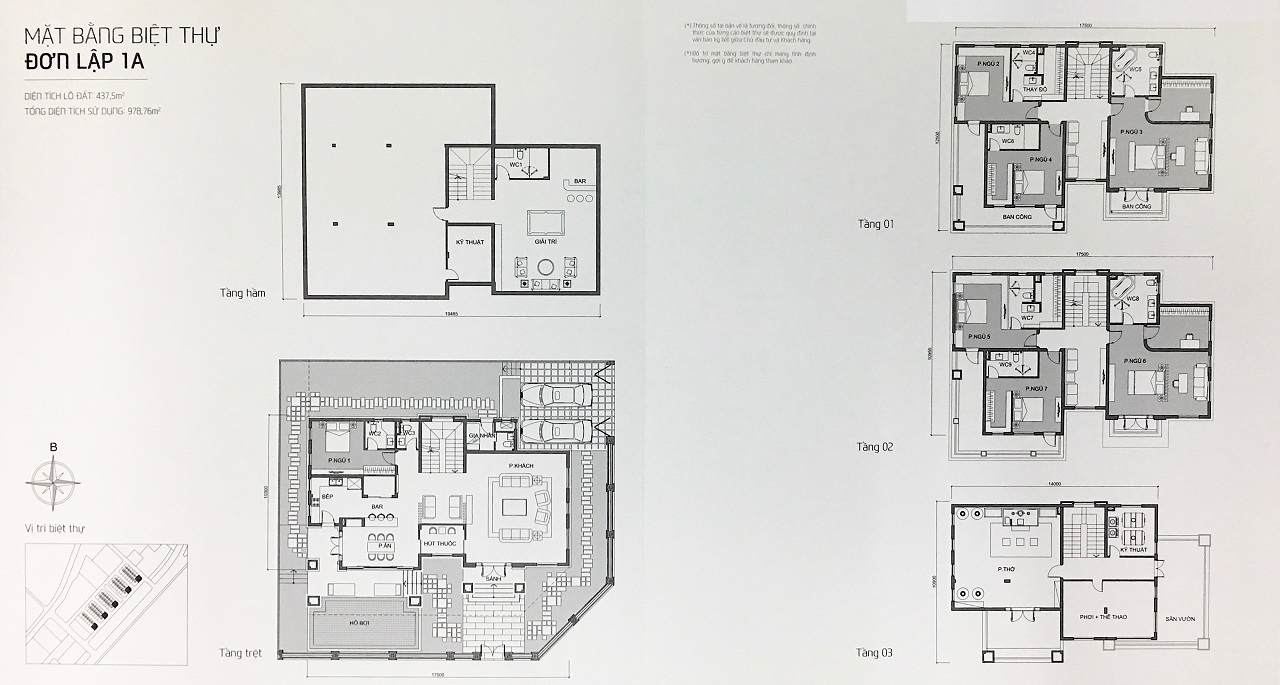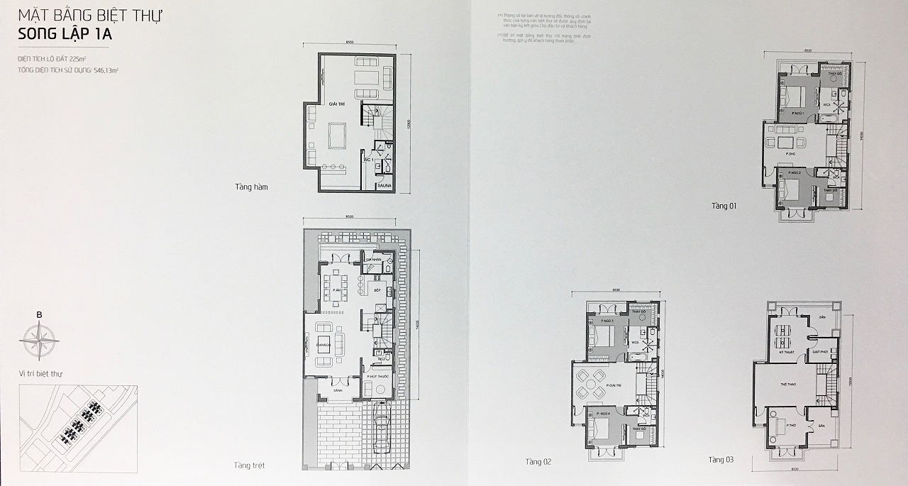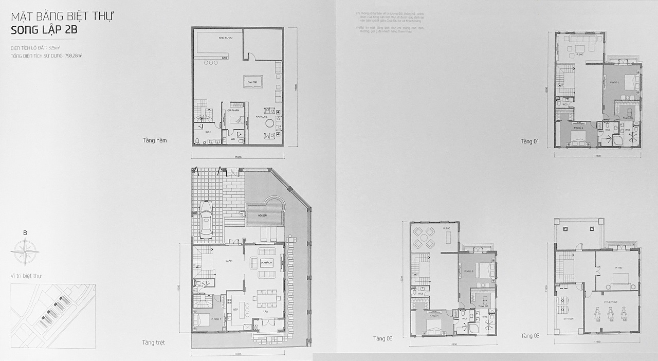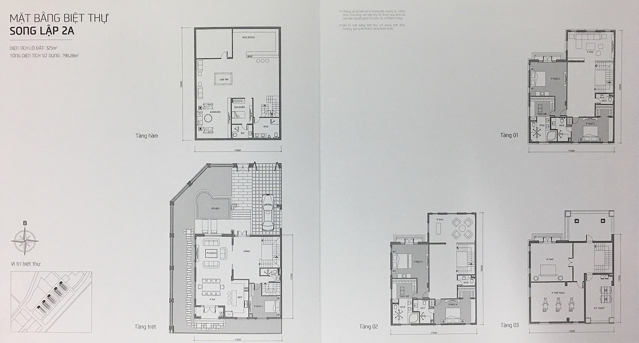 Những mẫu Biệt thự (Song lập A2, 2B) và Biệt thự (Đơn lập 1A, 1B) là lô góc nên đều vạt góc và có hồ bơi riêng cho từng căn biệt thự.