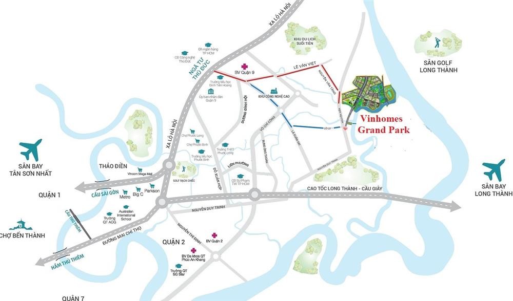 Biệt thự Vinhomes Grand Park có vị trí tọa lạc đắc địa, vượng phong thủy khi nằm ven sông Đồng Nai và cả 1 phần sông Tắc thuộc KĐT Vinhomes Quận 9 hiện đại hàng đầu khu vực.