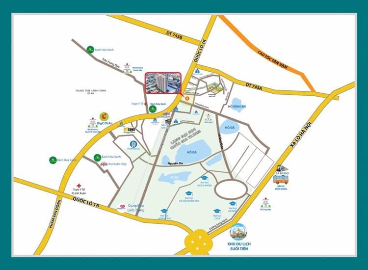 Vì nằm trên quốc lộ 1K, nên việc di chuyển của cư dân tại dự án này sẽ hết sức thuận lợi. Có thể dễ dàng di chuyển qua những con đường lớn như: đại lộ Phạm Văn Đồng, quốc lộ 1A, quốc lộ 1K, Tuyến đường xa lộ Hà Nội. Ngoài ra vị trí của căn hộ còn là nơi giao thoa giữa hai trung tâm kinh tế lớn ở phía Nam là Bình Dương và TP.HCM.