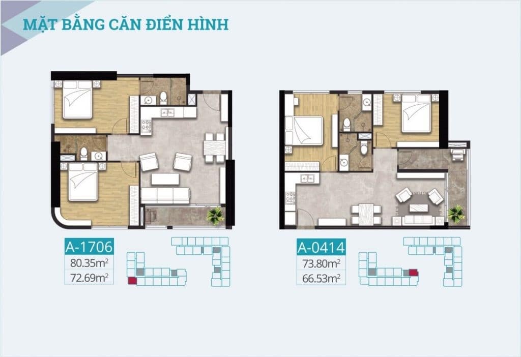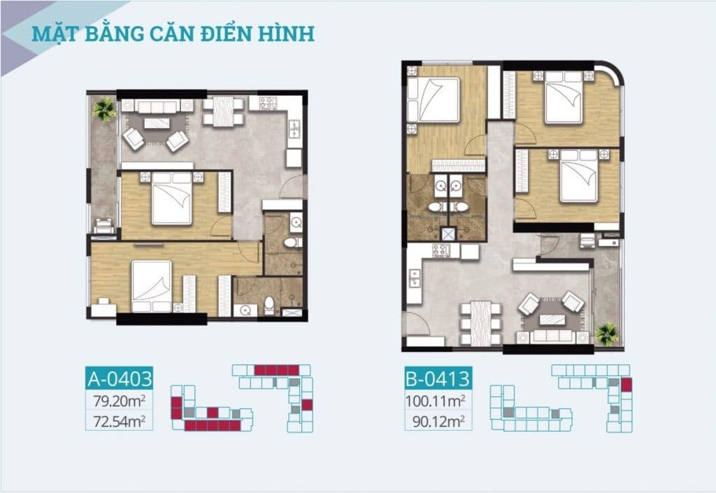 | Diện tích căn hộ | 53m2 – 173m2 |