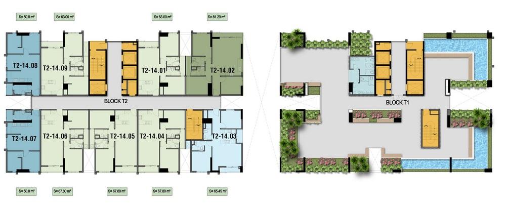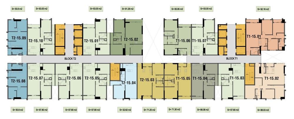 + Block Typical: Có 119 căn hộ + 3 căn shophouse + 18 căn duplex