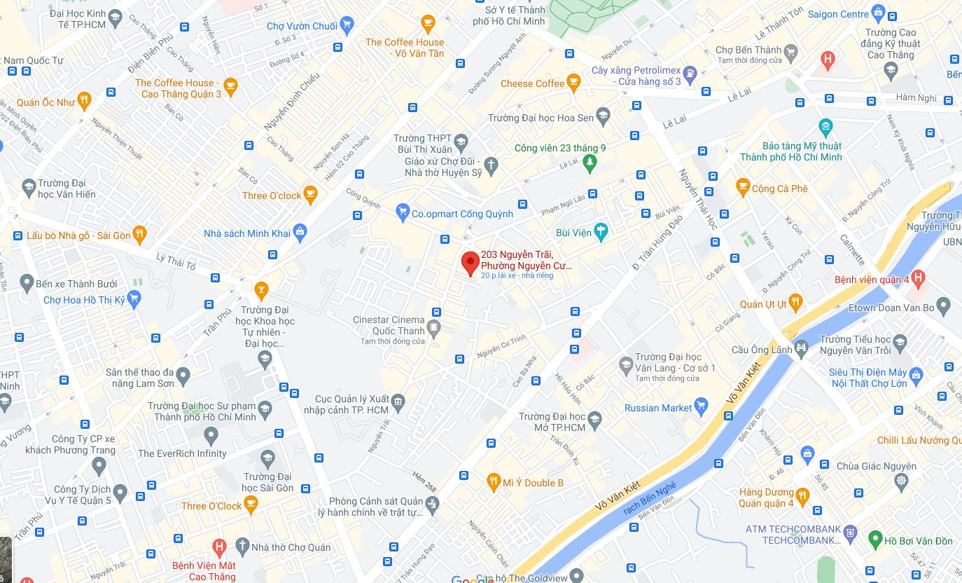 • Vị trí: Số 203 Nguyễn Trãi – P.Nguyễn Cư Trinh – Q.1 – TP Hồ Chí Minh