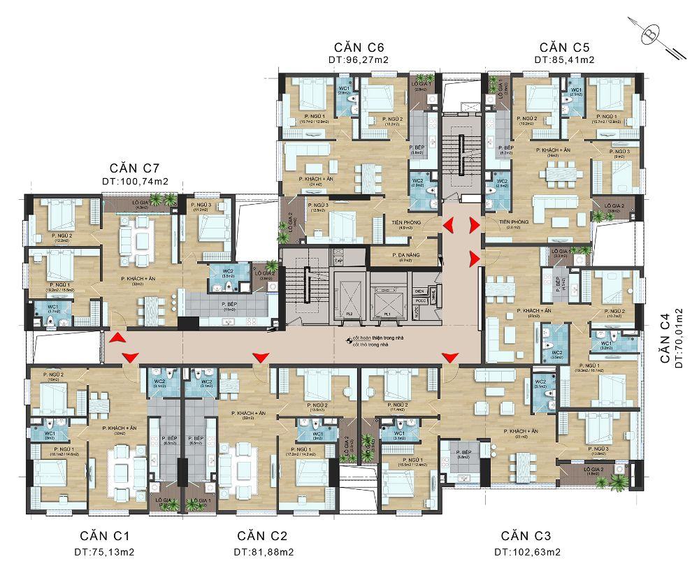 • Diện tích căn hộ: 60 – 94 m²