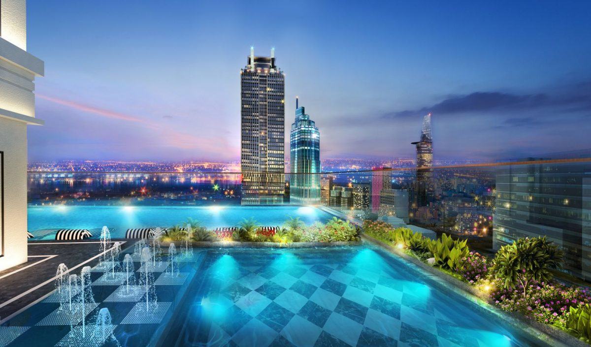 Khu vực sân tầng thượng được CĐT bố trí thiết kế hồ bơi hiện đại, khu vườn nướng BBQ; sân vườn; café sang trọng; khu vui chơi giải trí hiện đại… Từ nơi đây, bạn có thể ngắm nhìn toàn cảnh Sài Gòn thơ mộng về đêm.