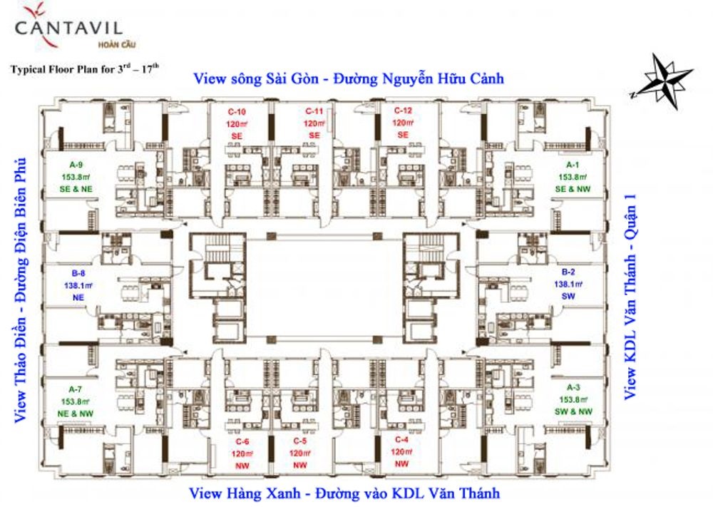 | Diện tích căn hộ | 120m2 – 138m2 – 153.8m2 |