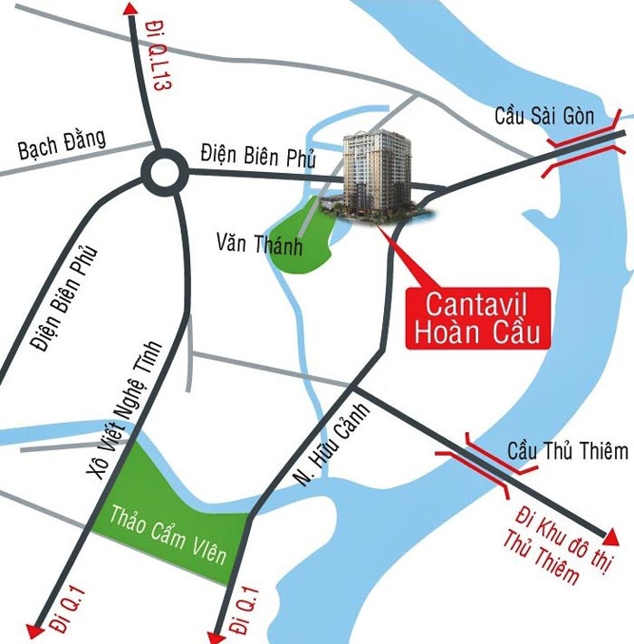 Dự án Cantavil Hoàn cầu là nơi định cư tuyệt vời cho những người thích sống trong một không gian yên tĩnh, riêng tư mà vẫn có sự liên kết với cuộc sống đô thị. Dễ dàng kết nối linh hoạt đến các khu vực lân cận qua các tuyến đường huyết mạch của Thành phố, thông qua hệ thống giao thông thuận lợi ở cả đường bộ xe hơi và đường sắt metro. Với vị trí nằm ngay mặt tiền Điện Biên Phủ cư dân sống tại căn hộ Cantavil Hoàn Cầu chỉ mất: