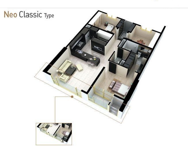 Căn hộ được thiết kế với không gian mở tràn ngập ánh nắng tự nhiên, nội thất chủ yếu bằng gỗ và đá tự nhiên cao cấp tạo sự sang trọng và ấm cúng. Thiết bị chiếu sáng, thiết bị vệ sinh, khóa cửa kỹ thuật số đóng/mở với thẻ từ và mã khóa số,… tất cả đều đến từ các thương hiệu nổi tiếng.