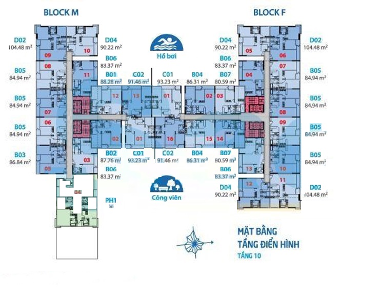 Quy mô phát triển dự án bao gồm 2 tòa tháp căn hộ cao 16 tầng cao và 1 tầng hầm dành cho chỗ để xe của mọi cư dân. Các căn hộ với 2 – 3 Phòng ngủ hiện đại có diện tích 80,59m2 – 110,26m2.