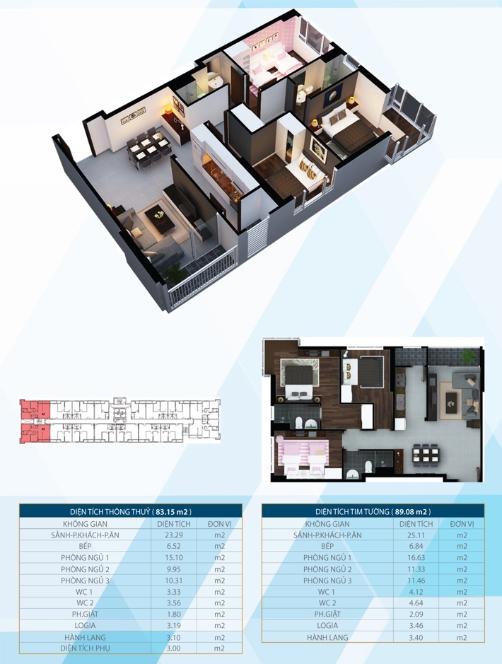 + Loại A: 3 PN , DT 96.7m2 , 96m2, 85 m2