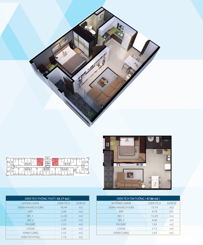 + Loại C: 1 PN, DT 48.9m2, 48.7 m2
