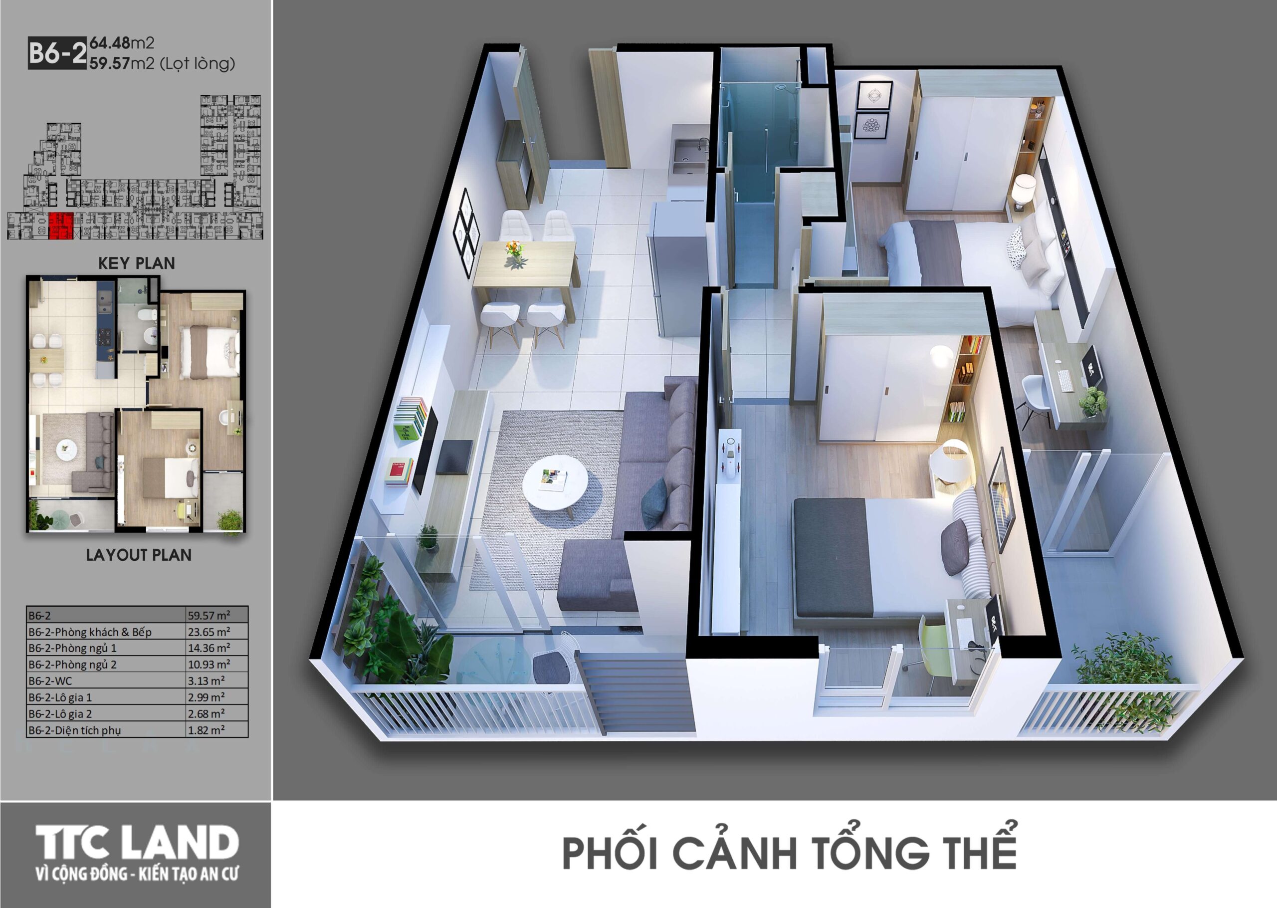 Căn 2 phòng ngủ – 2 wc
