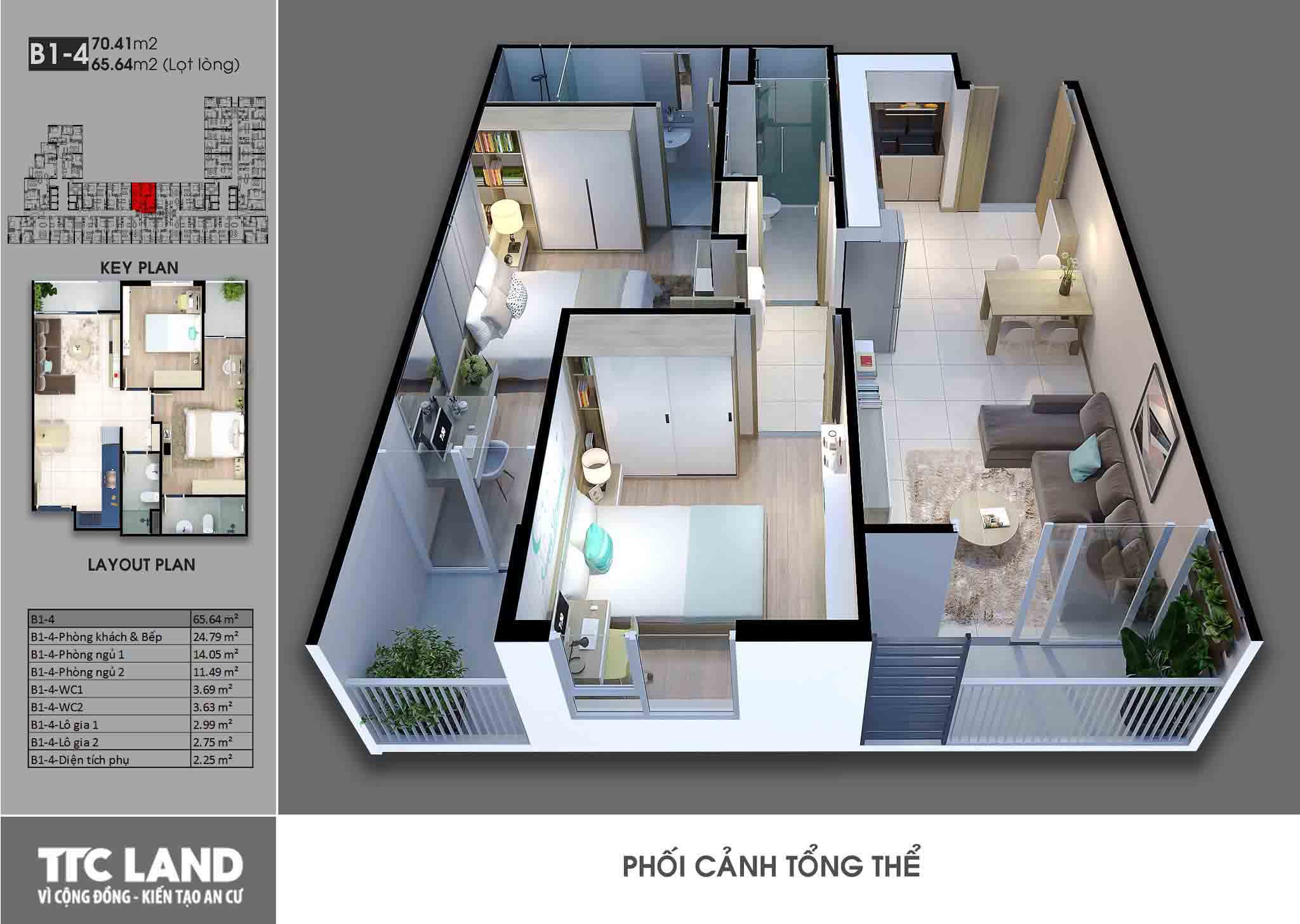 Căn 2 phòng ngủ – 1 wc