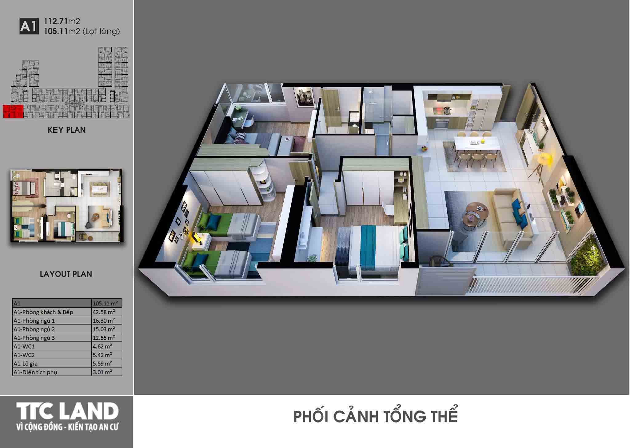 Căn 3 phòng ngủ – 2 wc