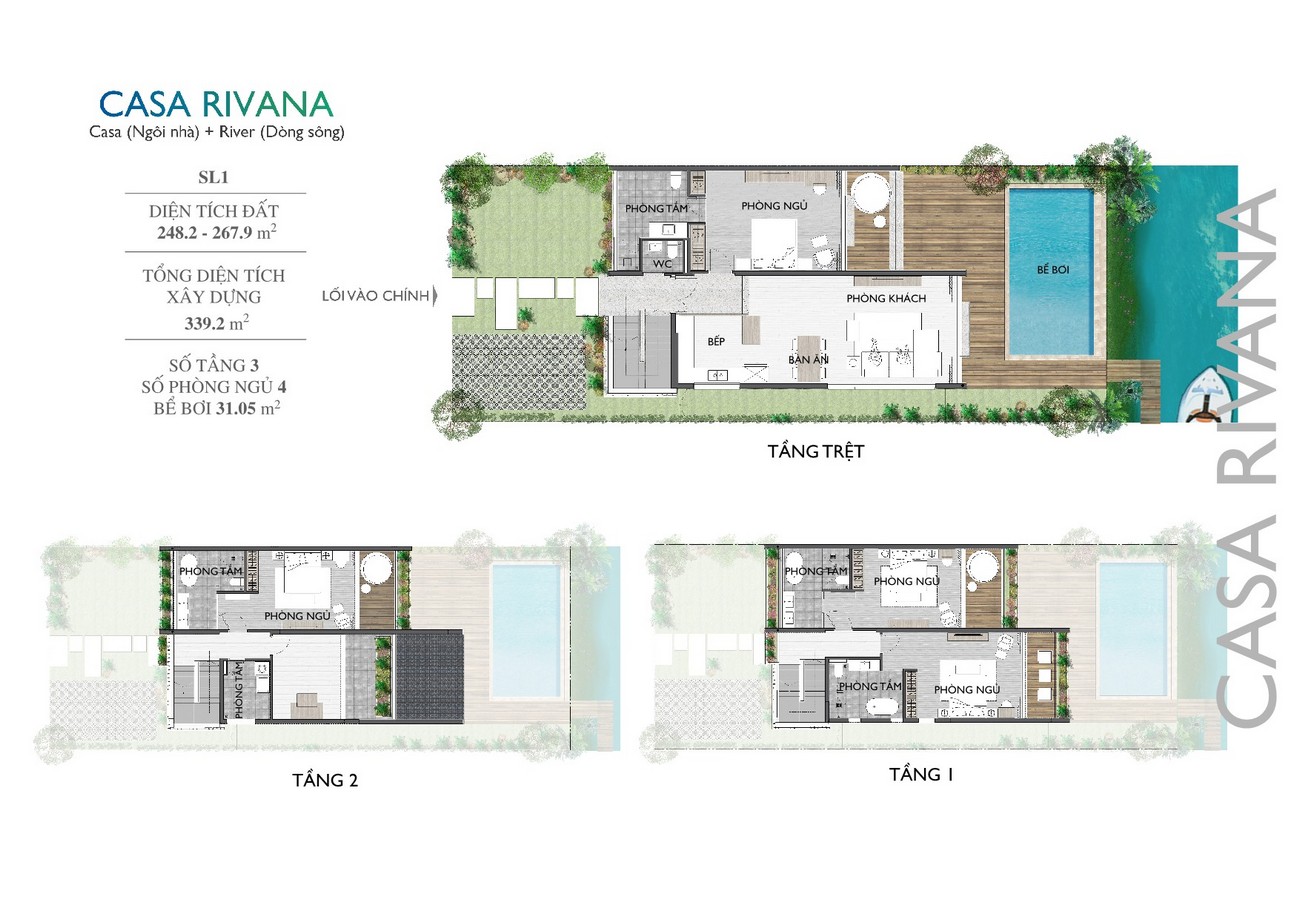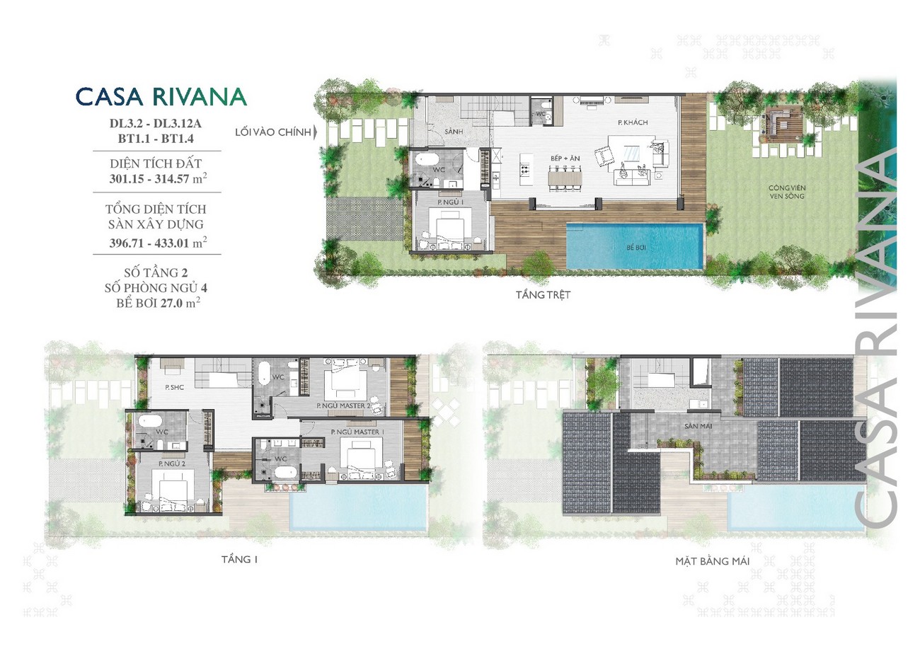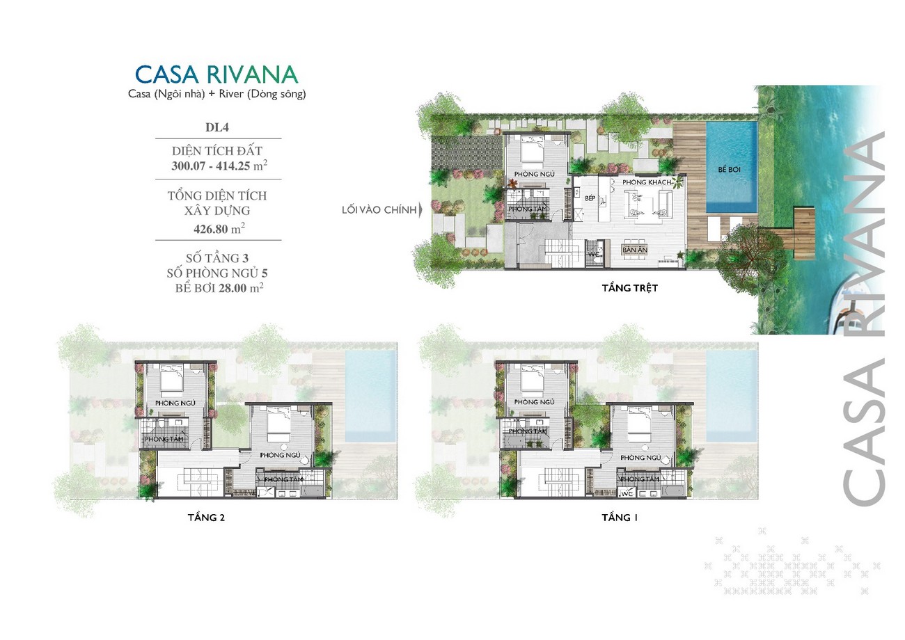 • Phân khu Casa Rivana gồm 59 Lô Song lập, 55 Lô Đơn lập và 4 Lô Biệt thự