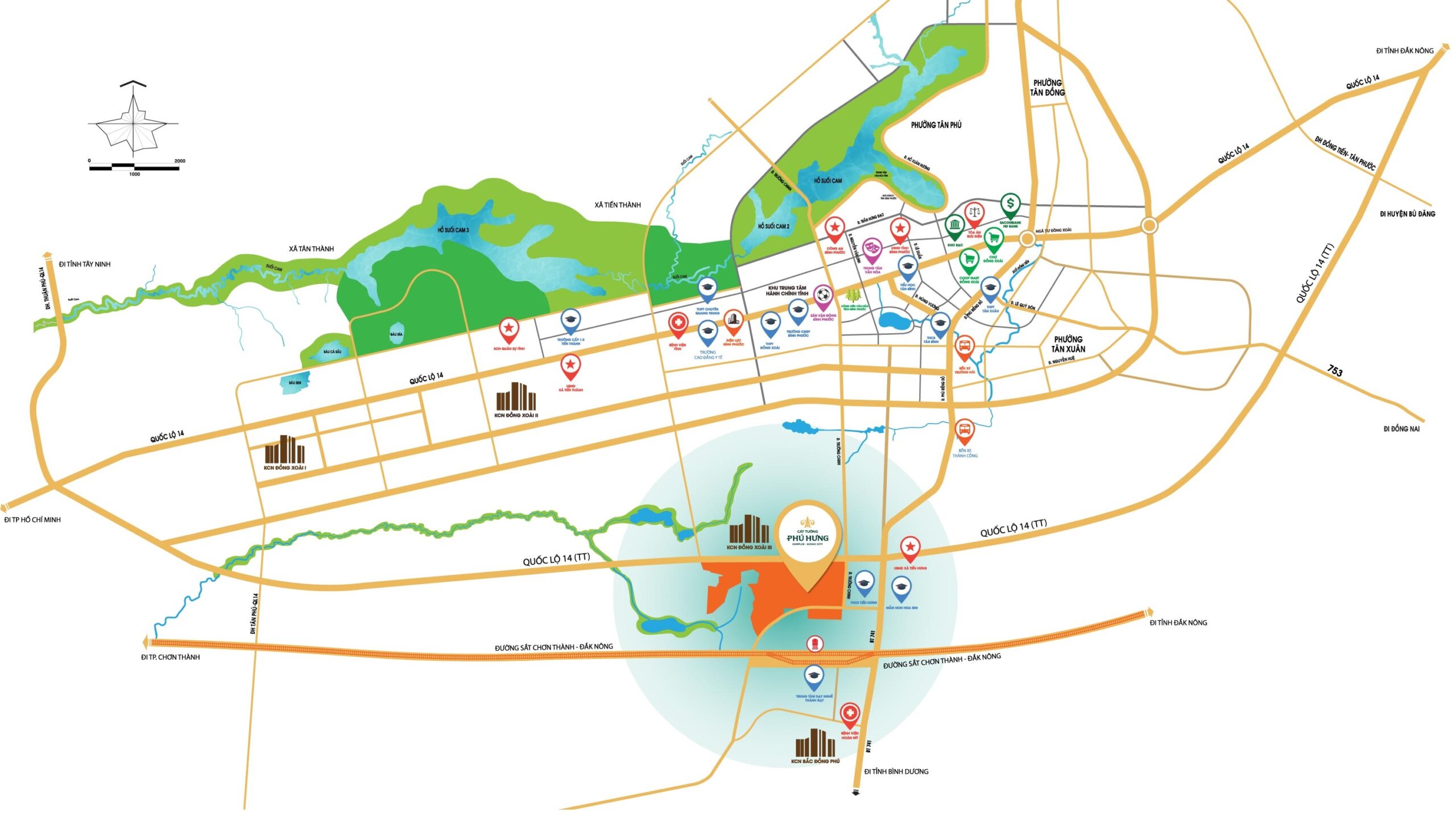Khu Đô Thị Phức Hợp – Cảnh Quan Cát Tường Phú Hưng sở hữu vị trí đắc địa ngay trung tâm Thành Phố Đồng Xoài, Tỉnh Bình Phước và nằm trong vùng kinh tế trọng điểm phía Nam.