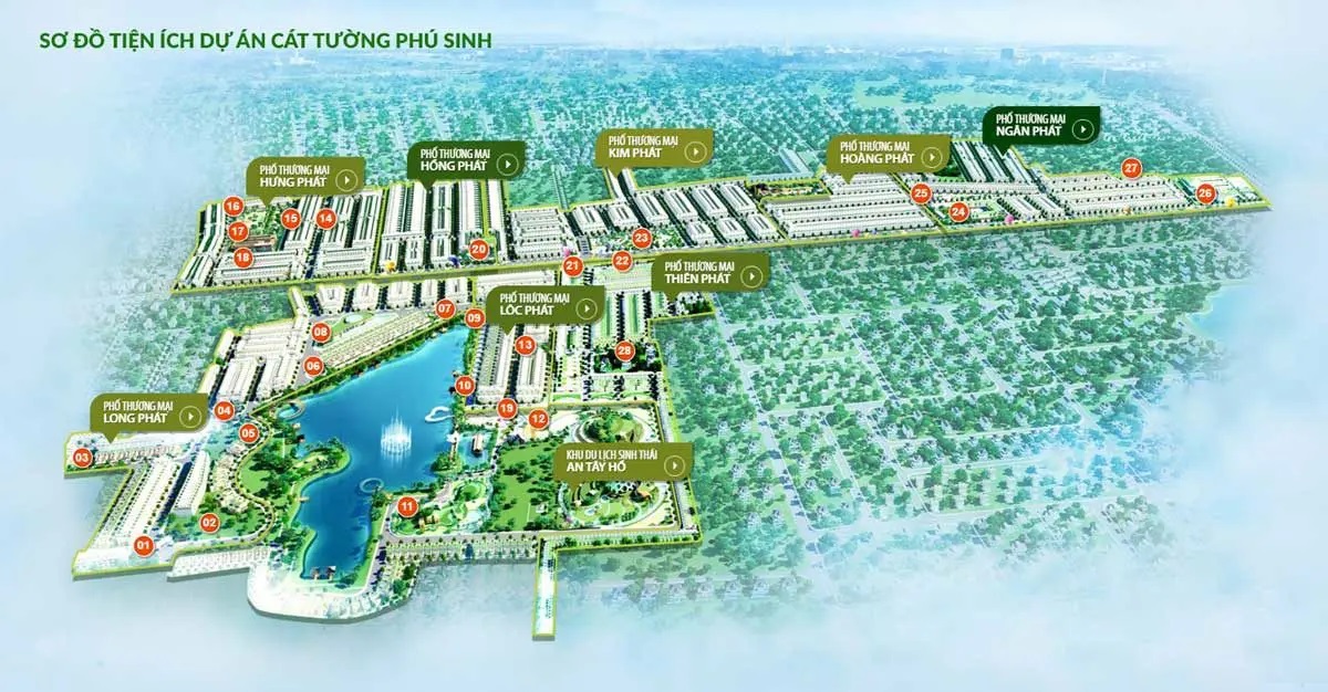 Giai đoạn 2 của dự án KĐT du lịch sinh thái Cát Tường Phú Sinh có tổng diện tích quy mô 45.7 ha, tổng số vốn đầu tư vào khoảng hơn 50 triệu USD, bao gồm có 5 phân khu chức năng phố thương mại: Ngân Phát; Hoàng Phát; Kim Phát; Hồng Phát; Thiên Phát cung cấp đa dạng loại hình sản phẩm thiết kế độc đáo, đẳng cấp.