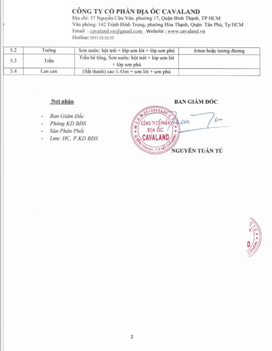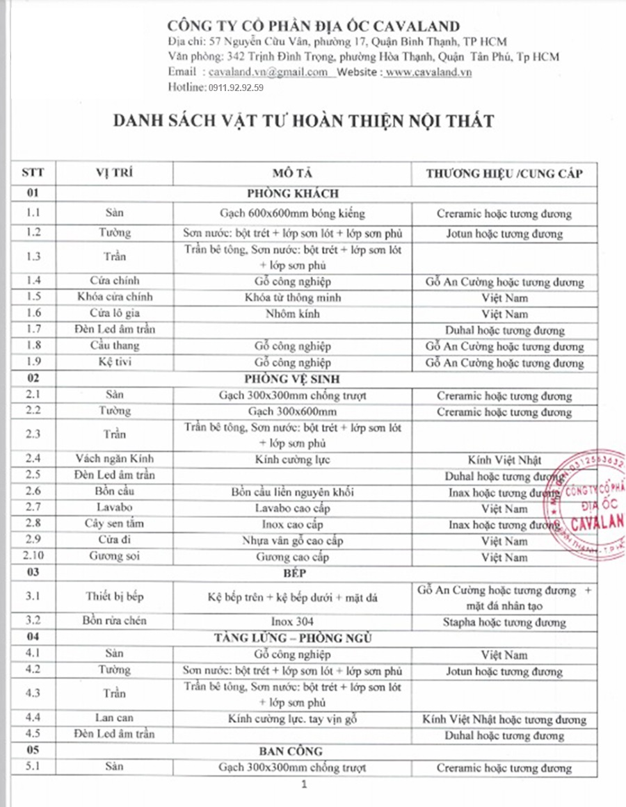 • Chủ đầu tư: Công ty Cổ phần Địa ốc Cavaland