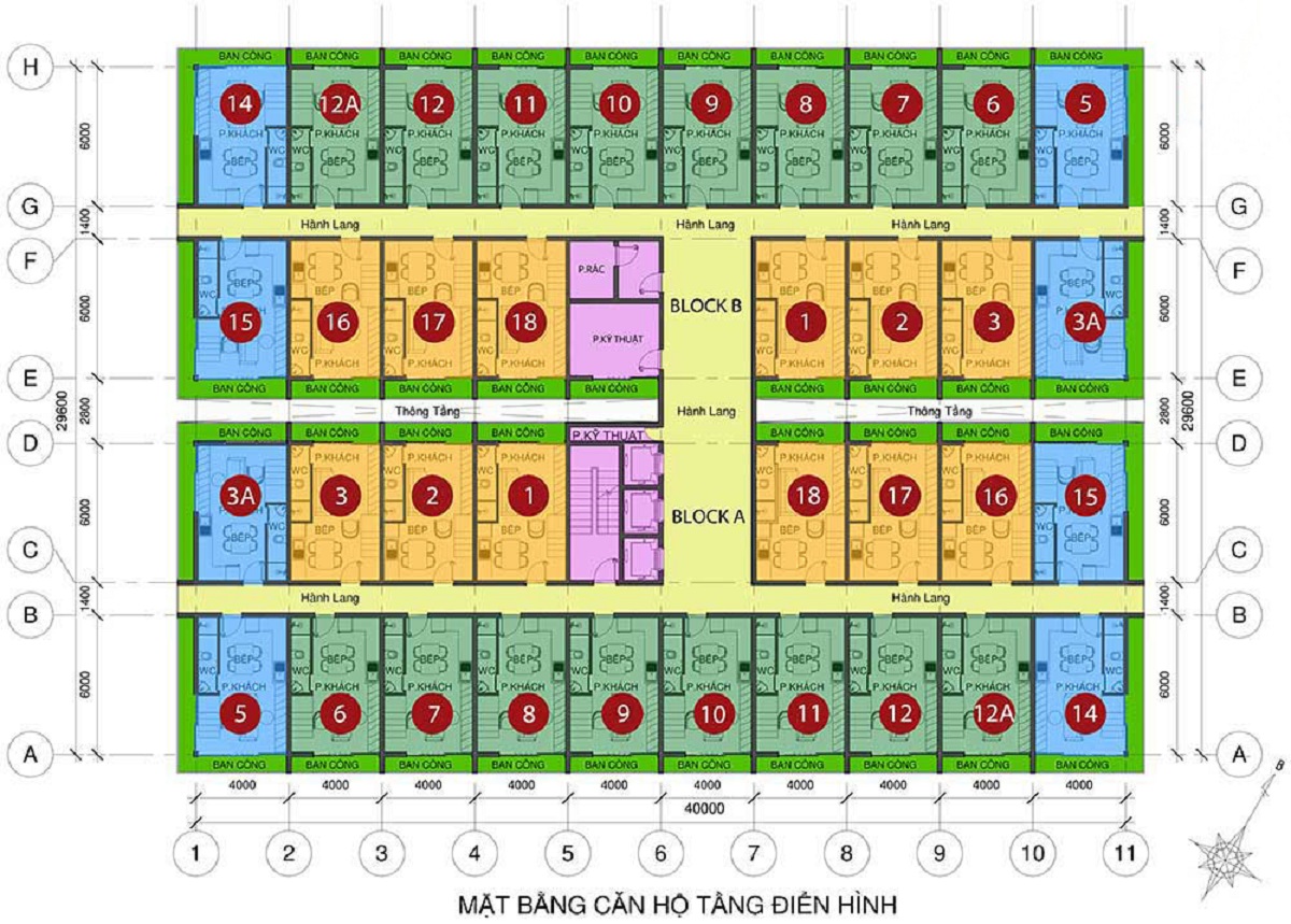 • Quy mô: 2 Block, cao 7 tầng, 1 tầng thương mại, 1 tầng hầm