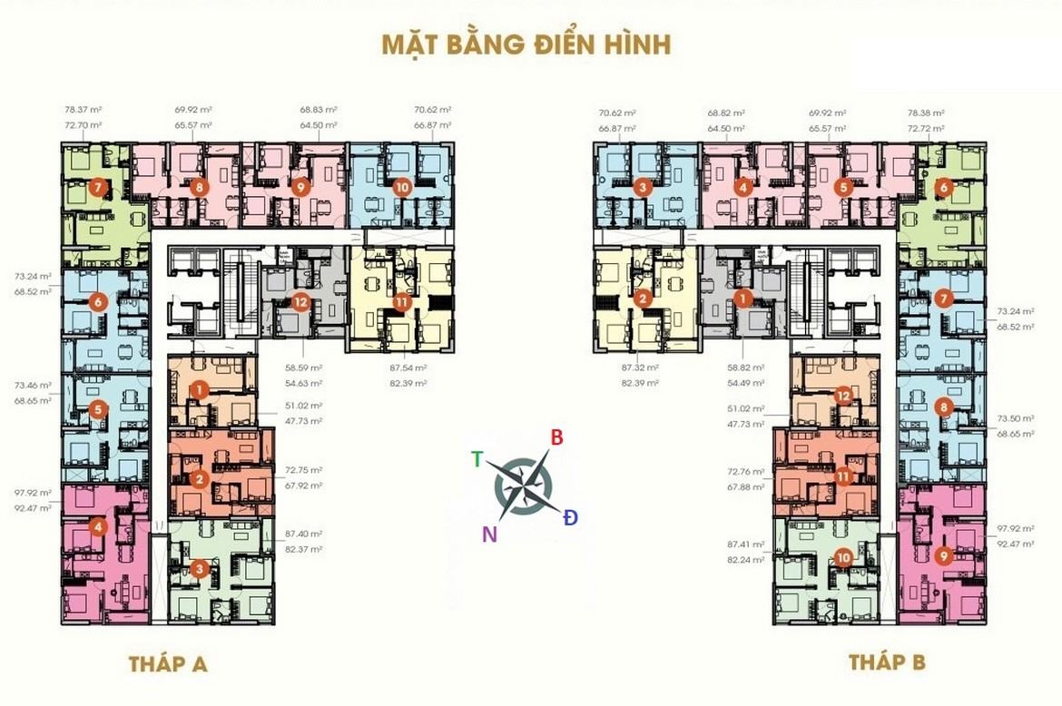 – Căn 2PN có các loại diện tích 58-68-72-73-78m2